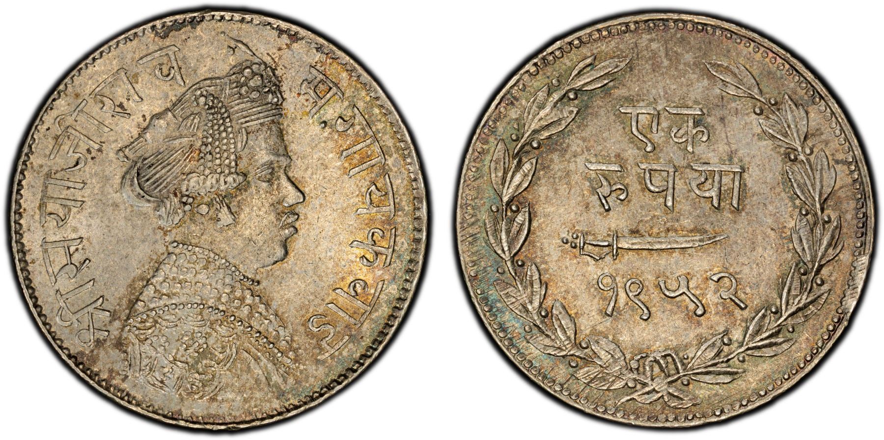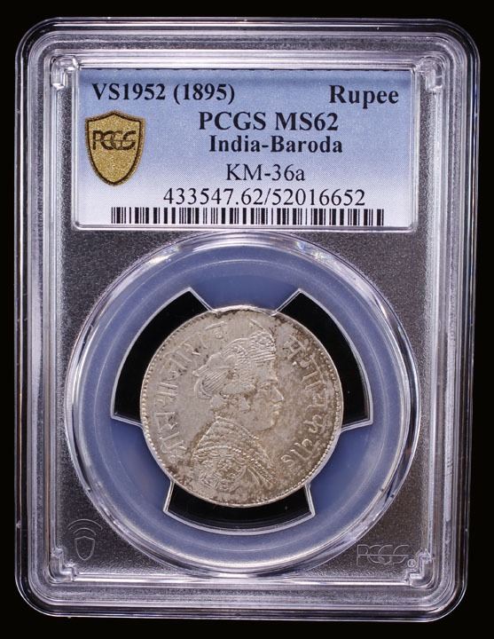 BARODA: Sayaji Rao III, 1875-1938, AR rupee, VS1952 (1895), Y-36a, a pleasing mint state example, PCGS graded MS63, ex Stephen Album Auction 30, Lot 2461, ex Paul Stevens Collection.