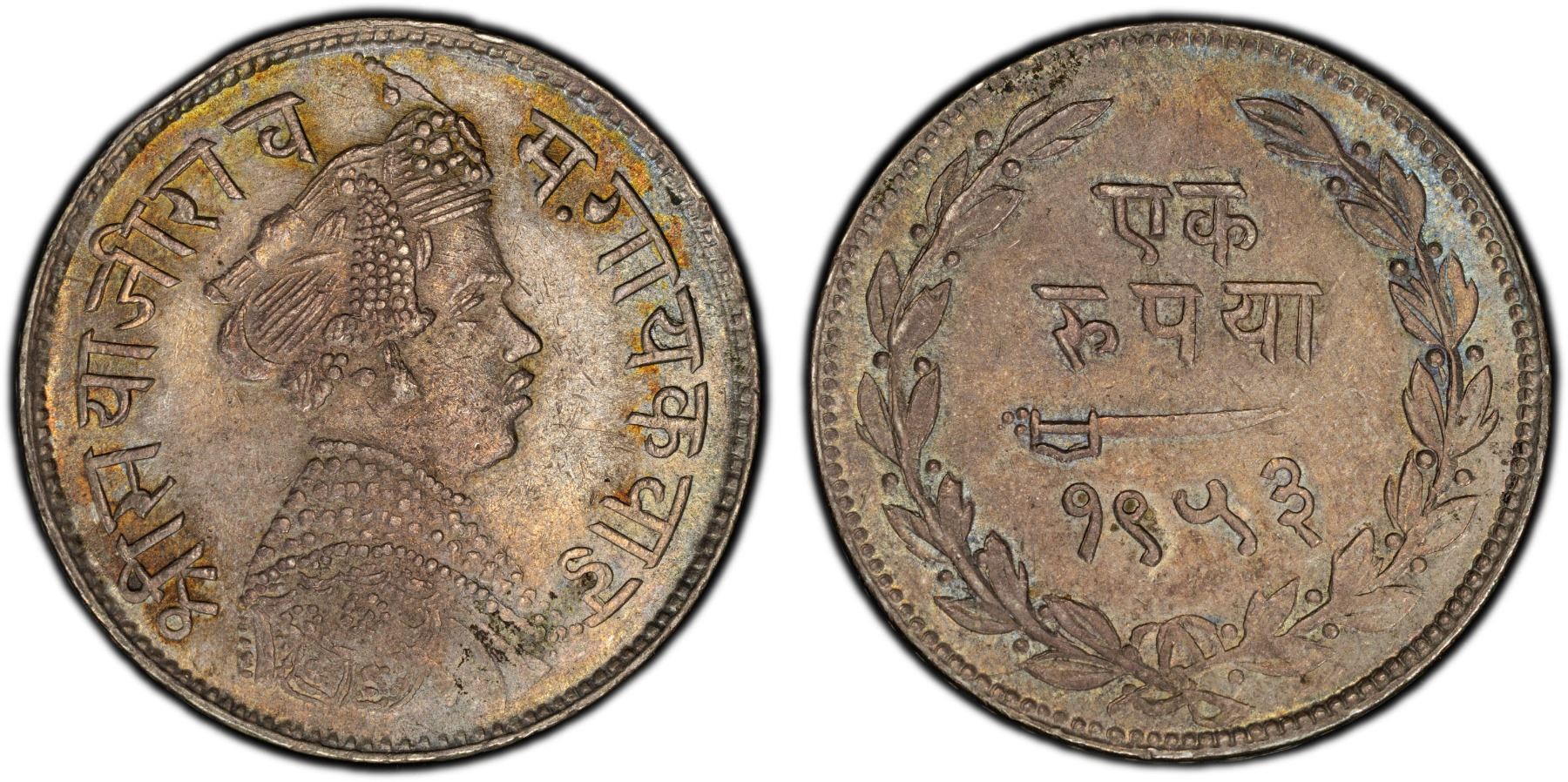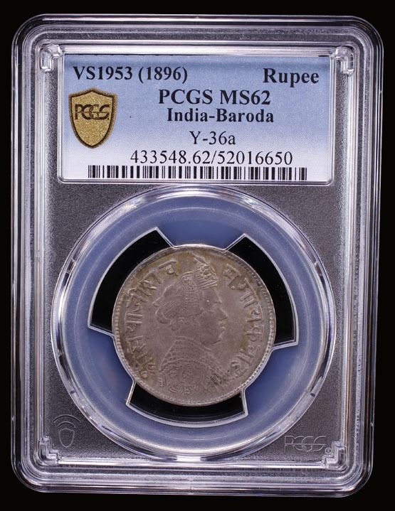 BARODA: Sayaji Rao III, 1875-1938, AR rupee, VS1953 (1896), Y-36a, a pleasing mint state example, PCGS graded MS62, ex Stephen Album Auction 24, Lot 1705, ex Paul Stevens Collection.