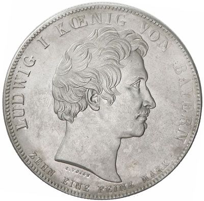 BAVARIA: Ludwig I, 1825-1848, AR thaler, 1828, KM-734, portraits of Queen Theresa and her 8 children, choice About Unc.