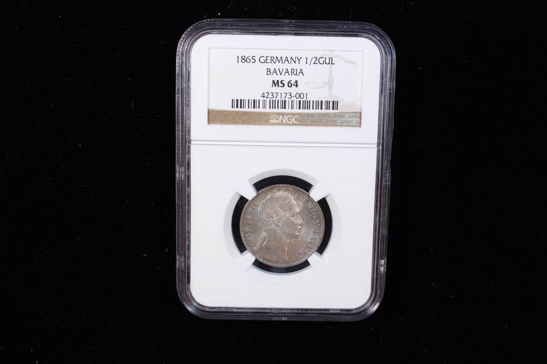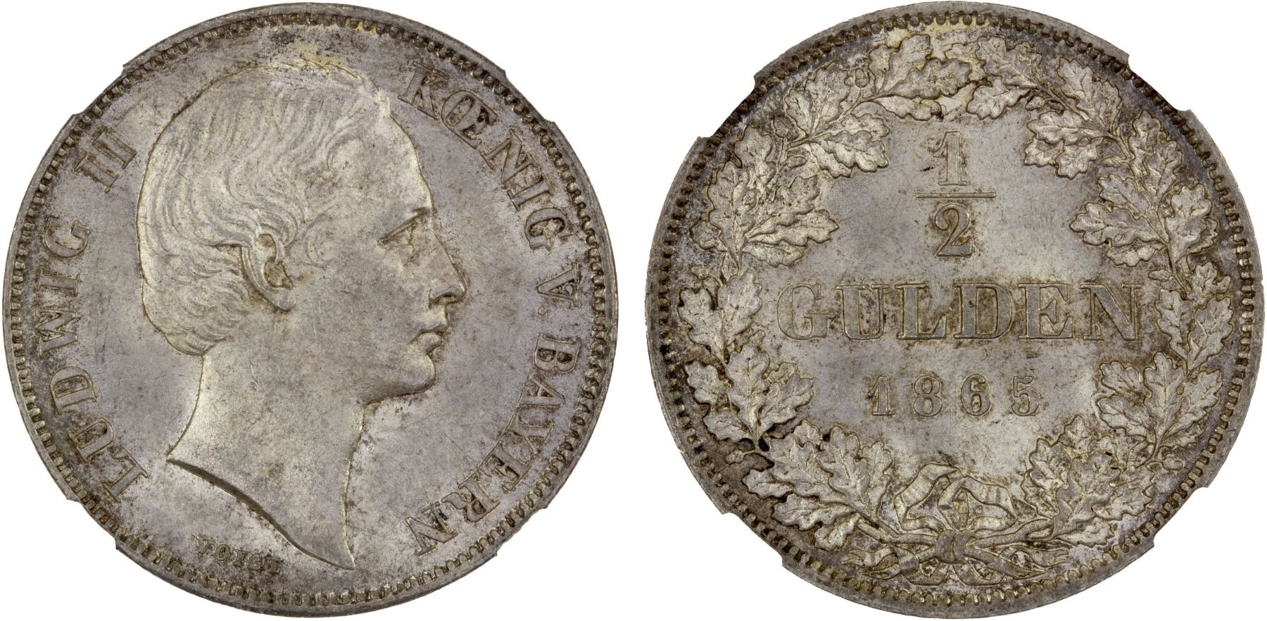 BAVARIA: Ludwig II, 1864-1886, AR 1/2 gulden, 1865, KM-866, AKS-179, a wonderful lustrous example! NGC graded MS64.