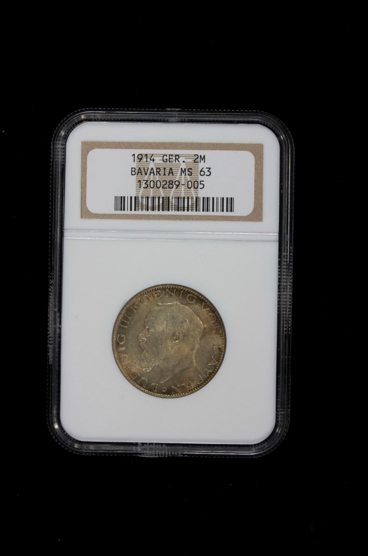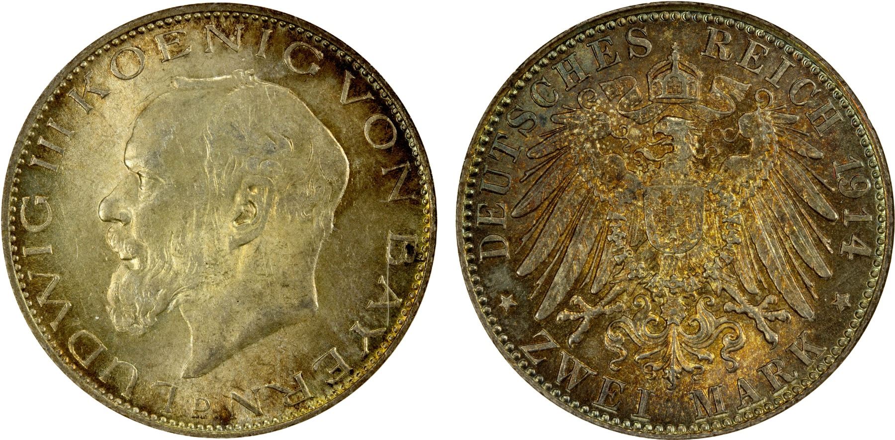 BAVARIA: Ludwig III, 1913-1918, AR 3 mark, 1914-D, KM-1002, nicely toned, especially the reverse, one-year type, old NGC holder, NGC graded MS63.
