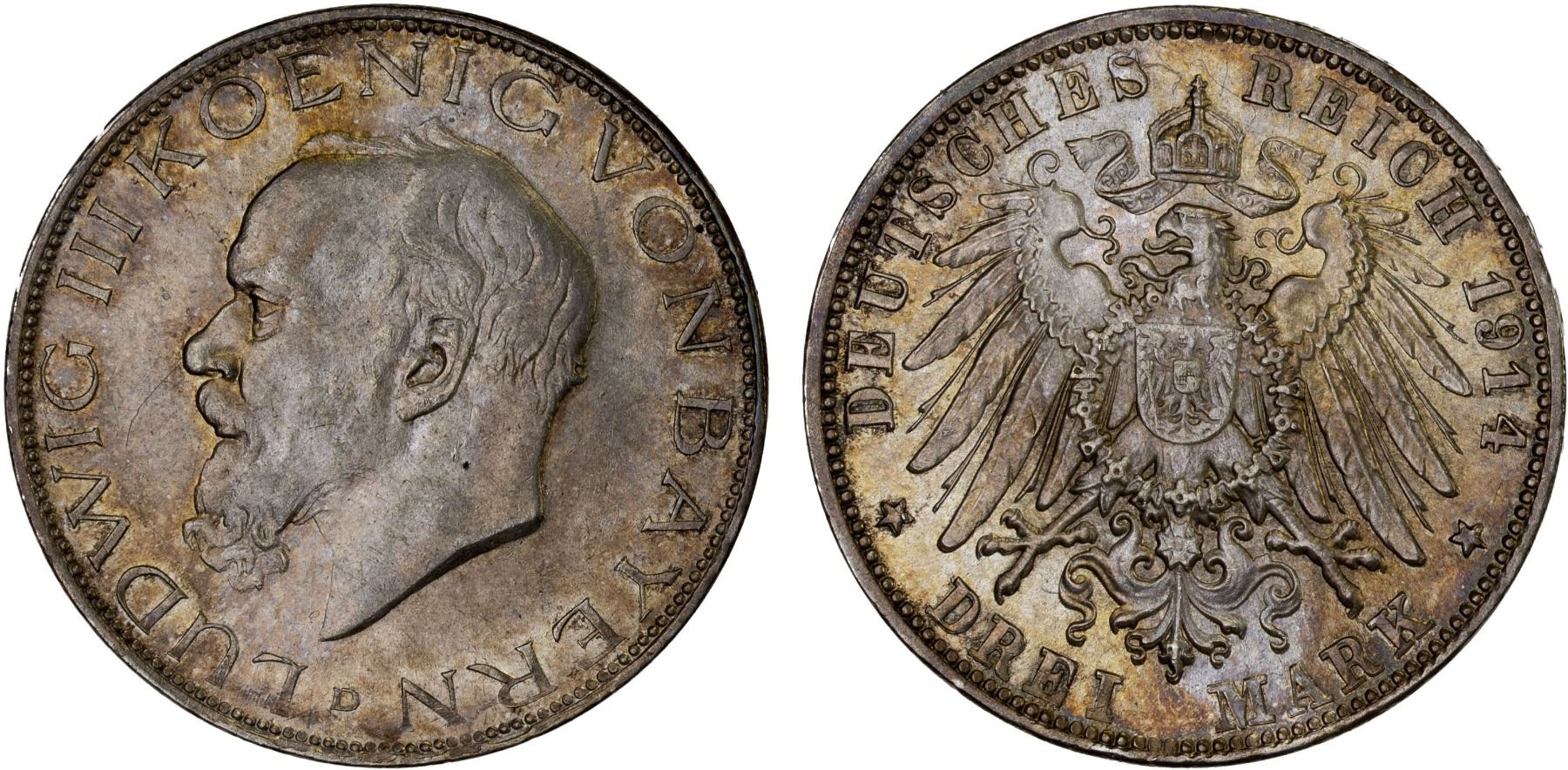 BAVARIA: Ludwig III, 1913-1918, AR 3 mark, Munich, 1914-D, Unc