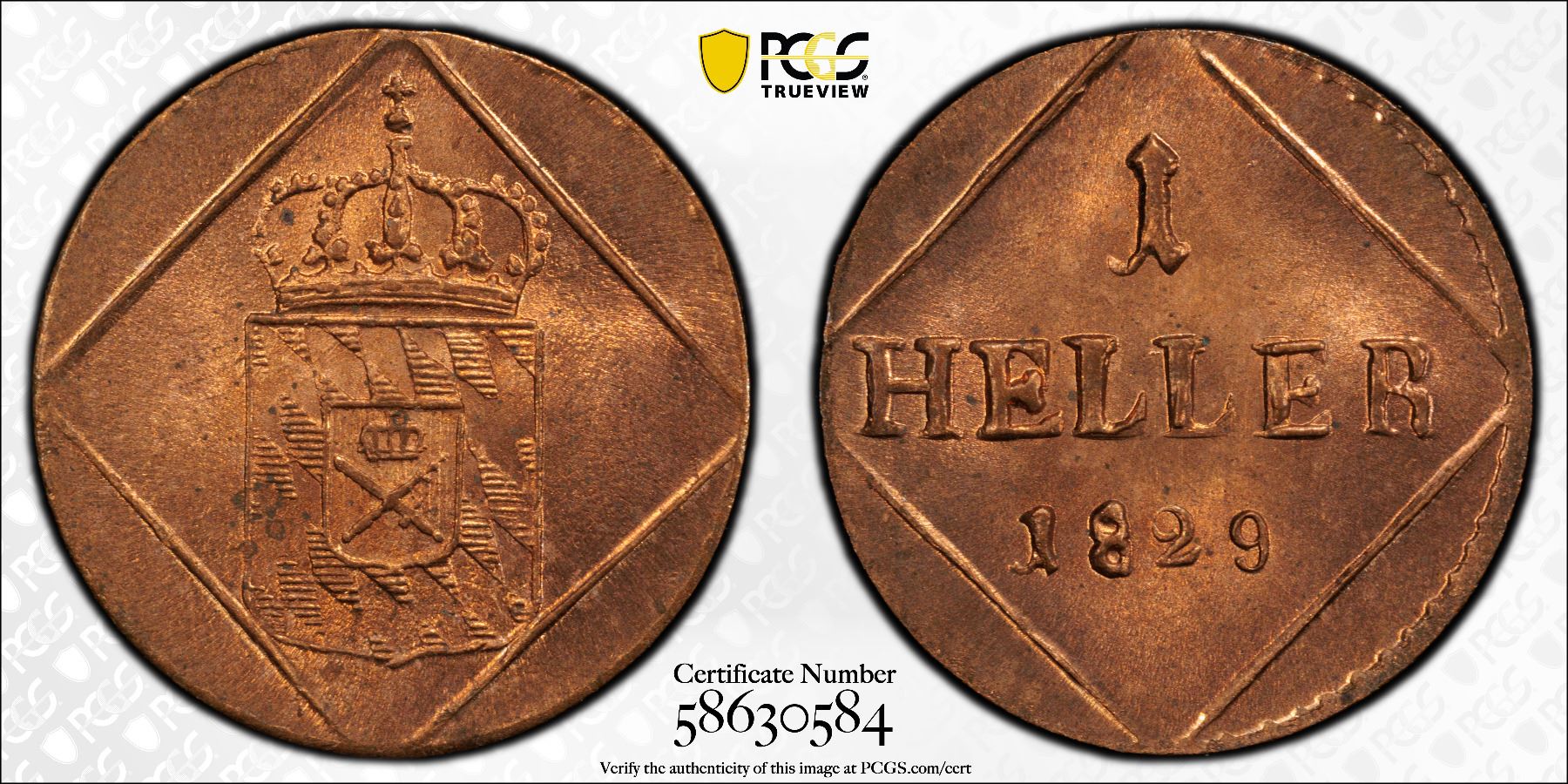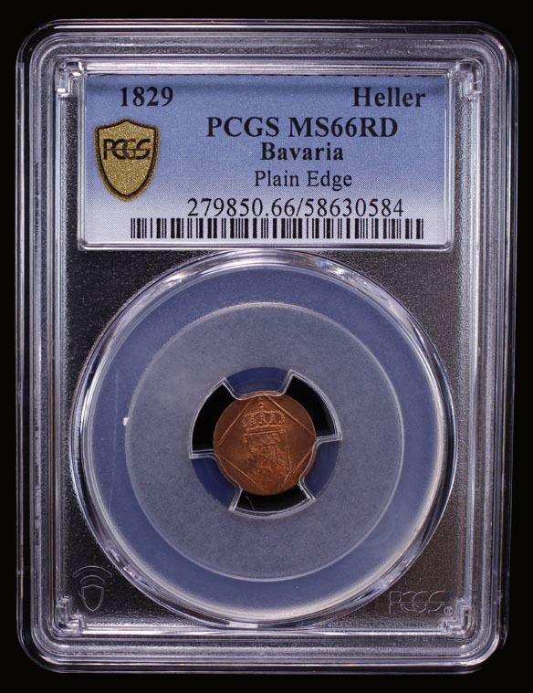 BAVARIA: Maximilian I Joseph, 1805-1825, AE heller, 1829, PCGS MS66 RD