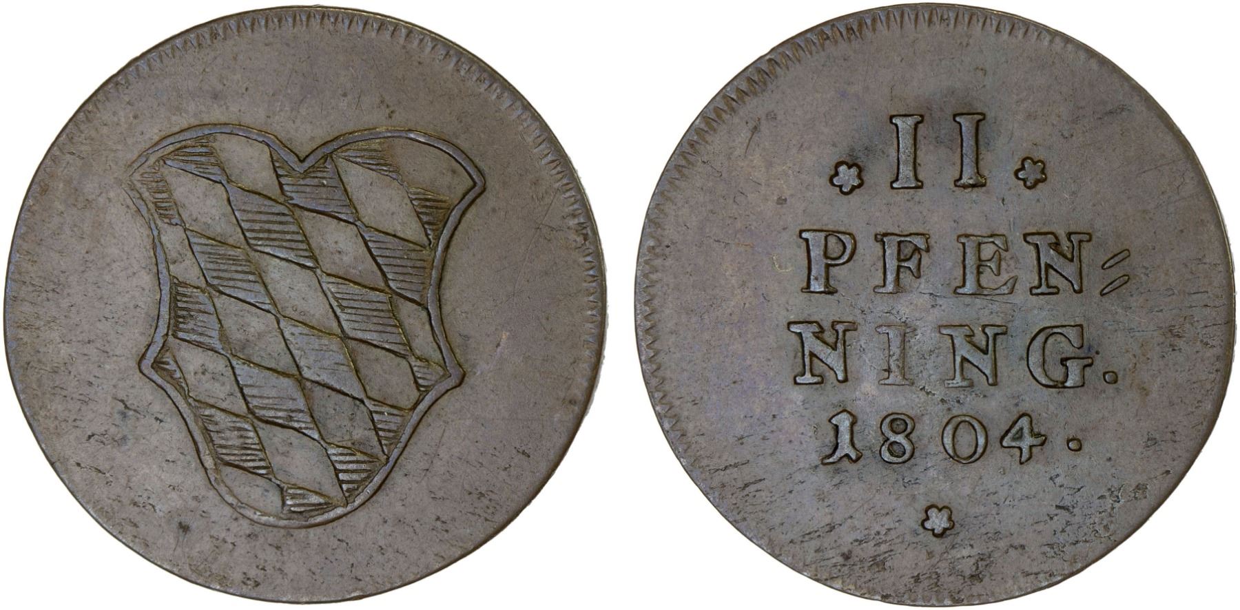 BAVARIA: Maximilian IV, Josef, as Elector, 1799-1805, AE pfenning, 1804, VF-XF