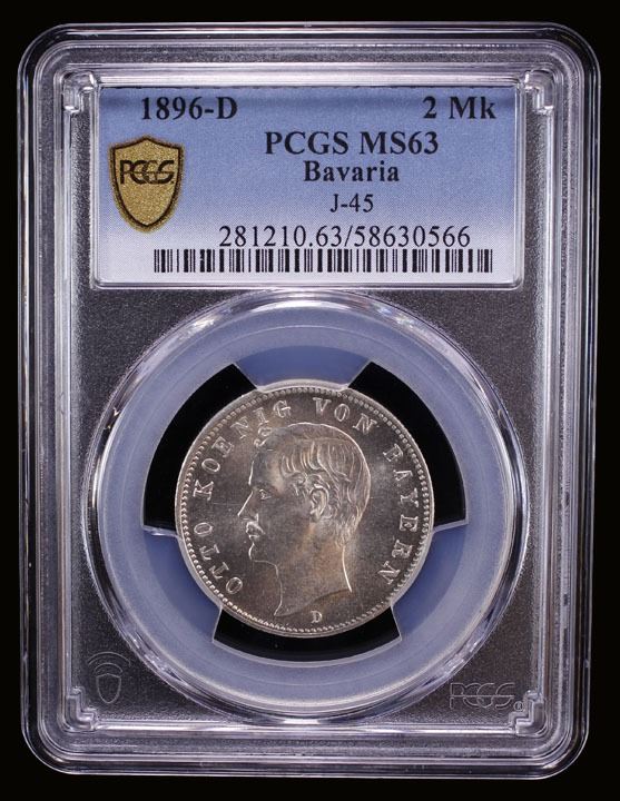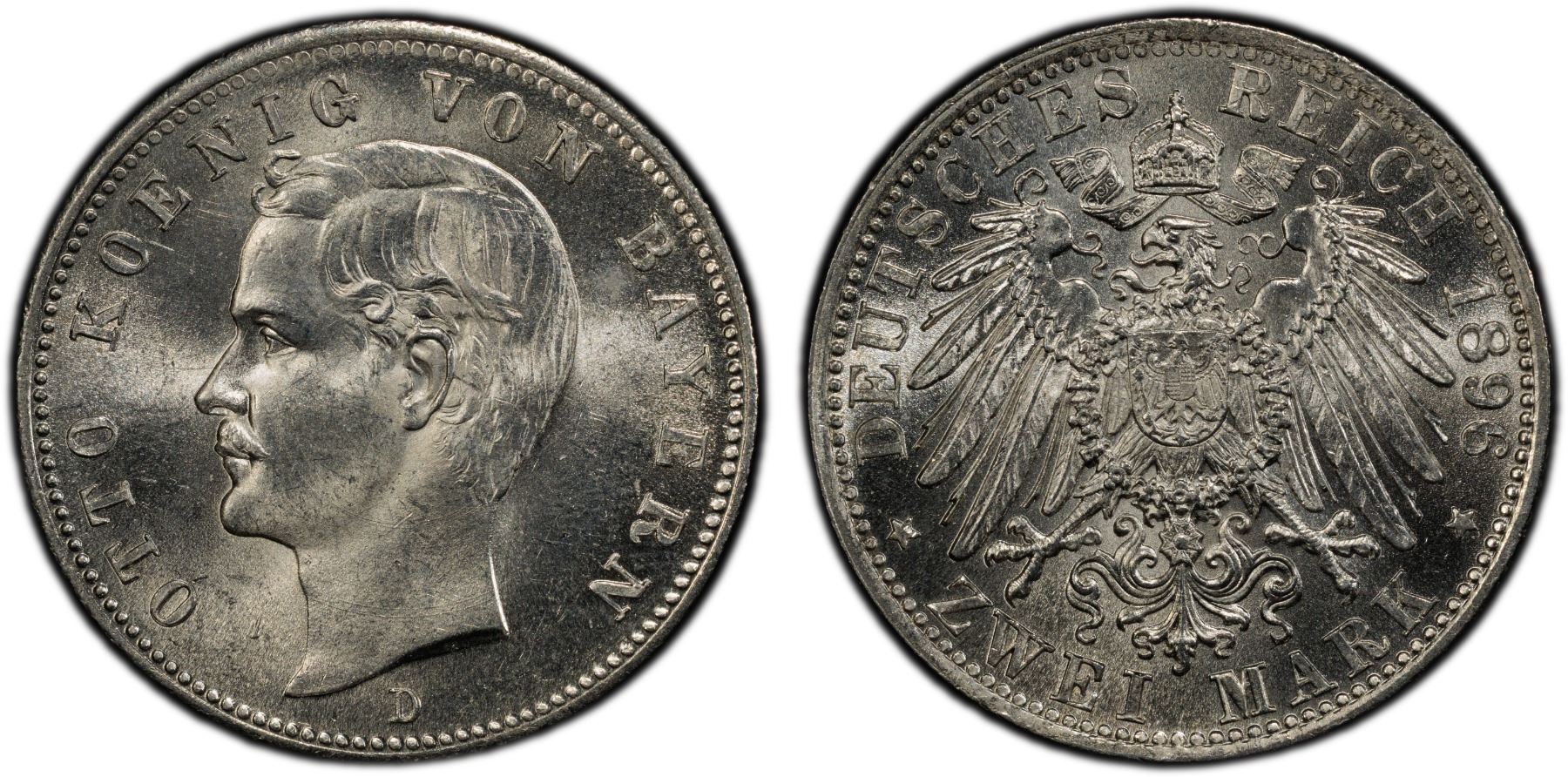 BAVARIA: Otto, 1886-1913, AR 2 mark, 1896-D, PCGS MS63