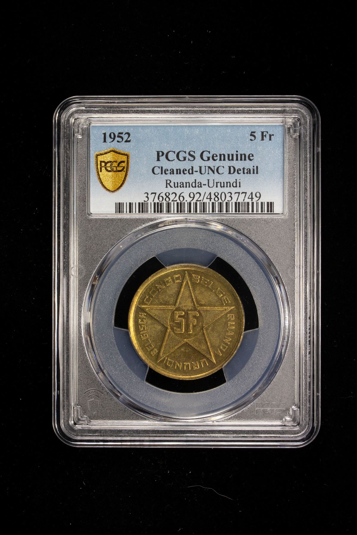 BELGIAN CONGO: Baudouin, 1951-1960, 5 francs, 1952, KM-1, Ruanda-Urundi issue, very lightly cleaned, PCGS graded UNC details
