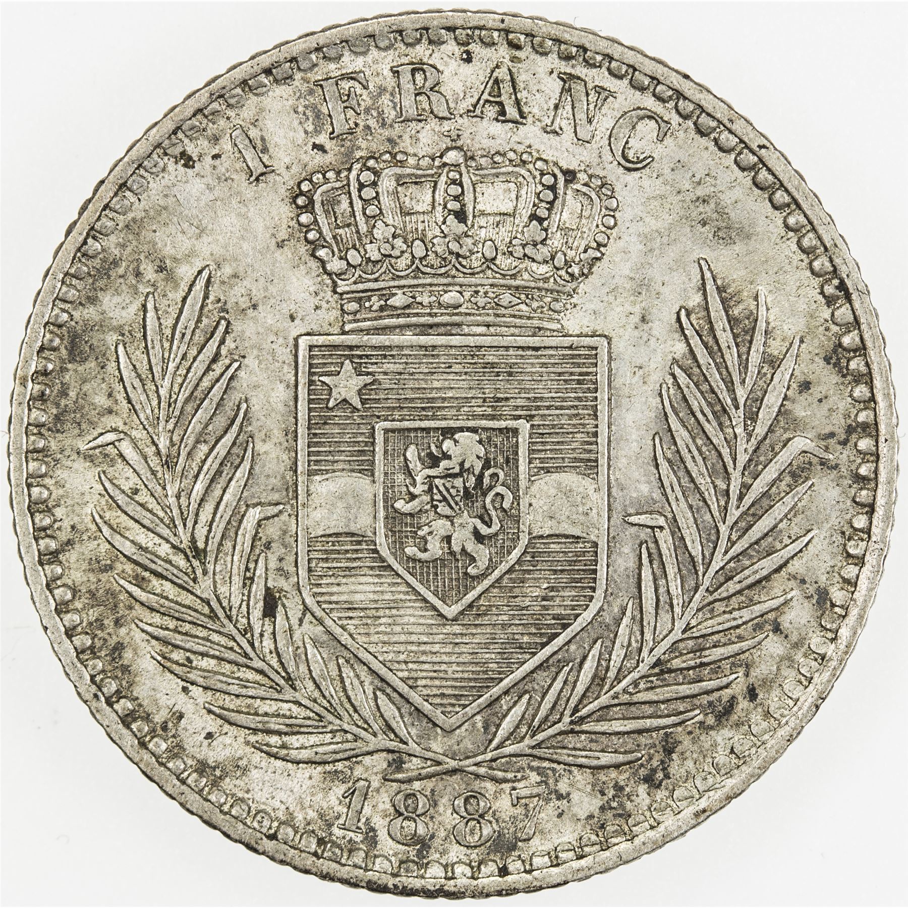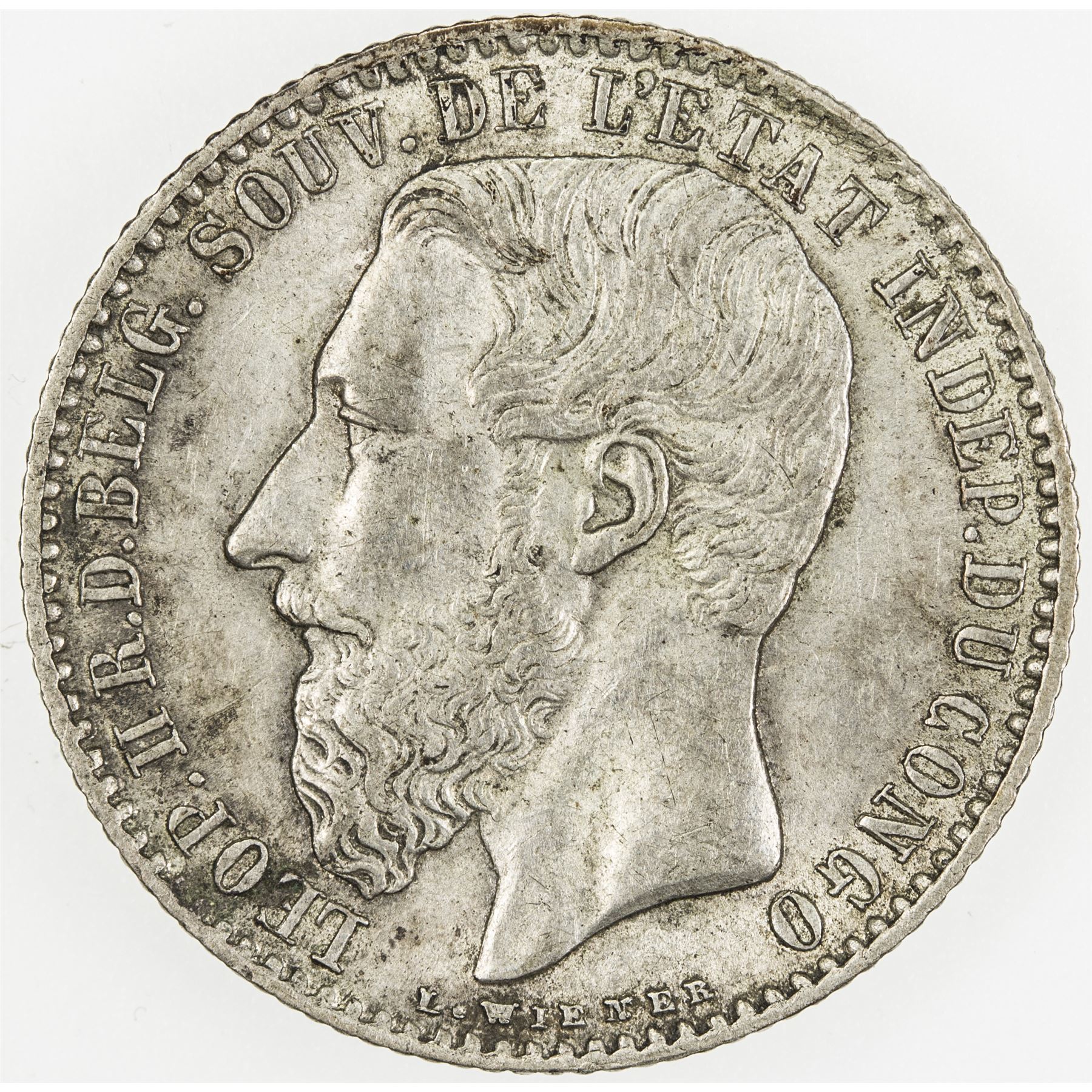 BELGIAN CONGO: Leopold II, 1865-1909, AR franc, 1887, KM-6, Choice EF.