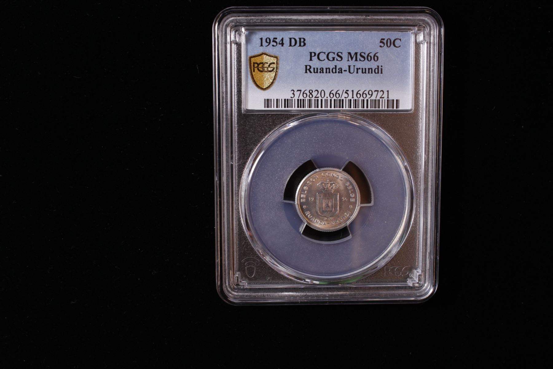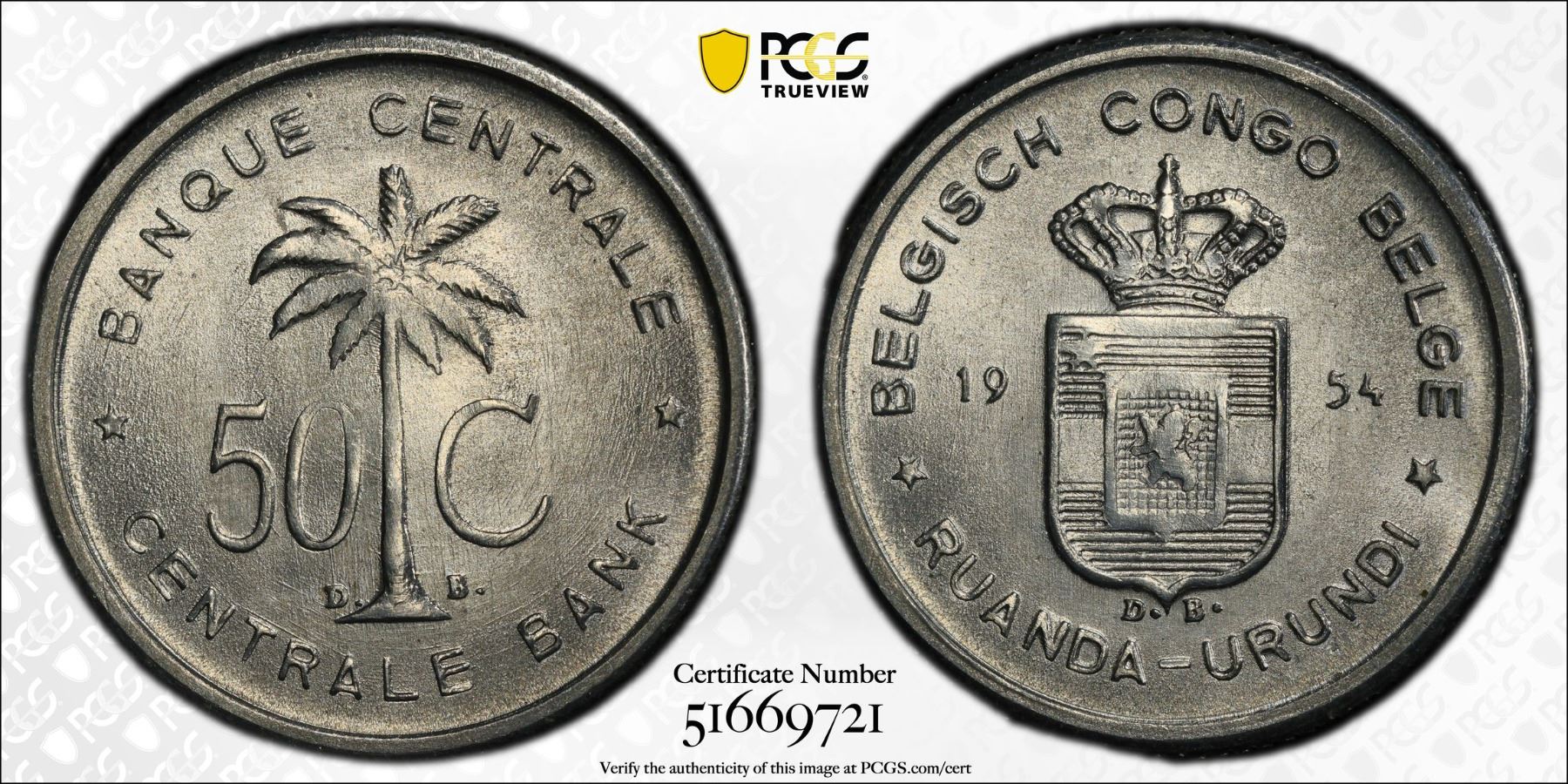 BELGIAN CONGO: Ruanda-Urundi, 50 centimes, 1954, KM-2, a fantastic lustrous example! PCGS graded MS66. Ruanda-Urundi was governed as a United Nations trust territory from 1946 to 1962.