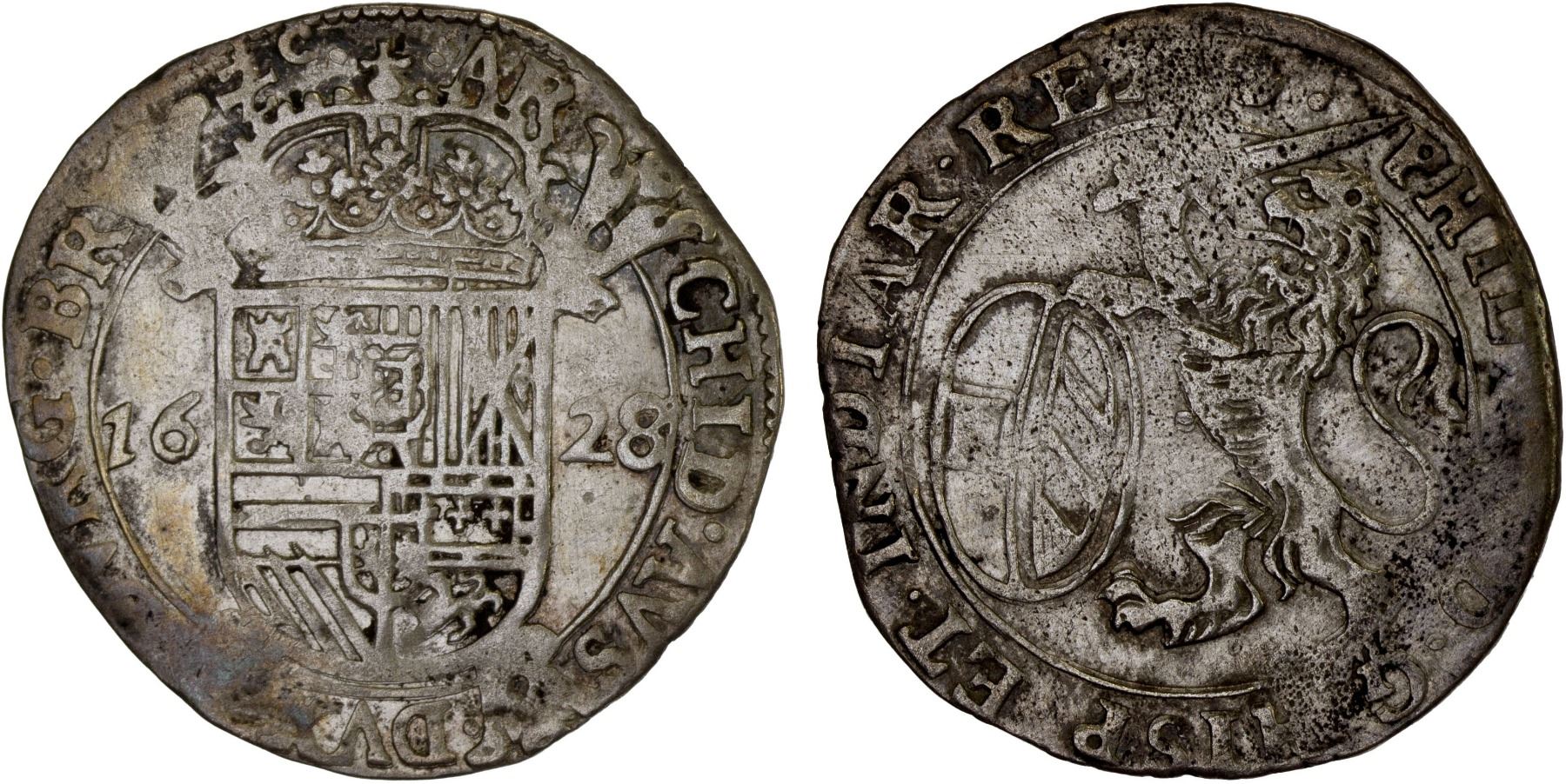 BELGIUM: BRABANT, AR escalin, Antwerp, 1628, KM-52.1, Fine.