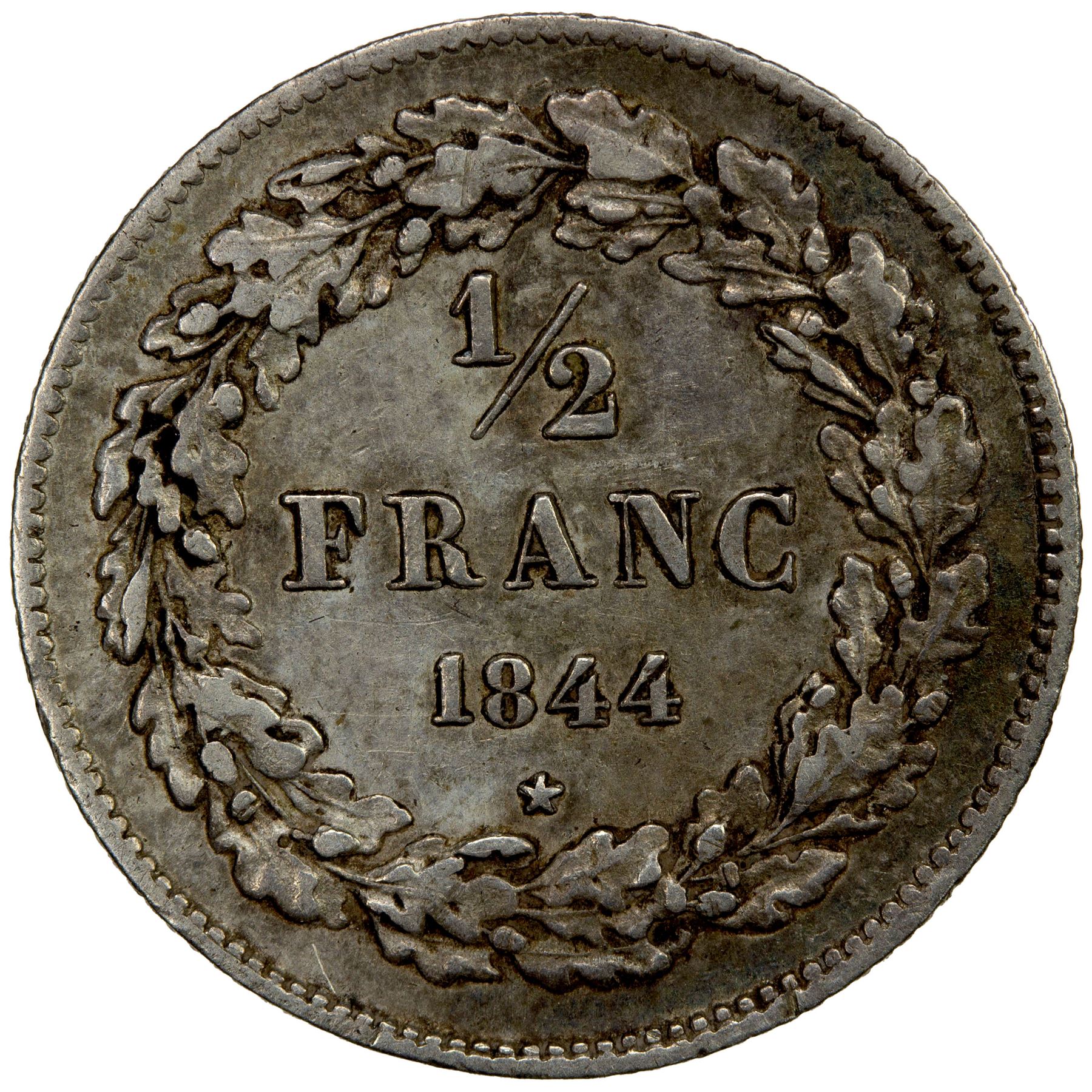 BELGIUM: Leopold I, 1831-1865, AR ½ franc, 1844, KM-6, Cr-10, light toning, Choice VF, ex Joe Sedillot Collection.