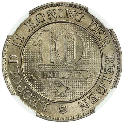 BELGIUM: Leopold II, 1865-1909, 10 centimes, 1901, KM-43, Flemish legends, superb quality and very rare in this quality, NGC graded MS67, R.