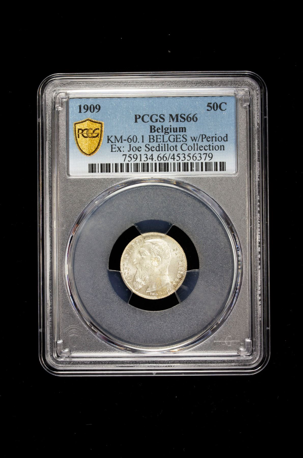 BELGIUM: Leopold II, 1865-1909, AR 50 centimes, 1909, KM-60.1, variety without dot, a fantastic mint state example! PCGS graded MS66, ex Joe Sedillot Collection.