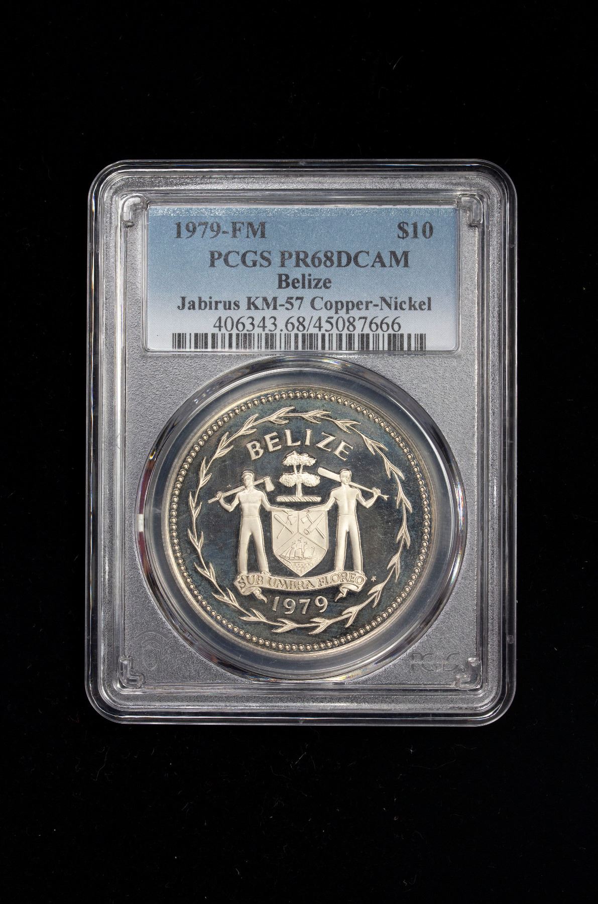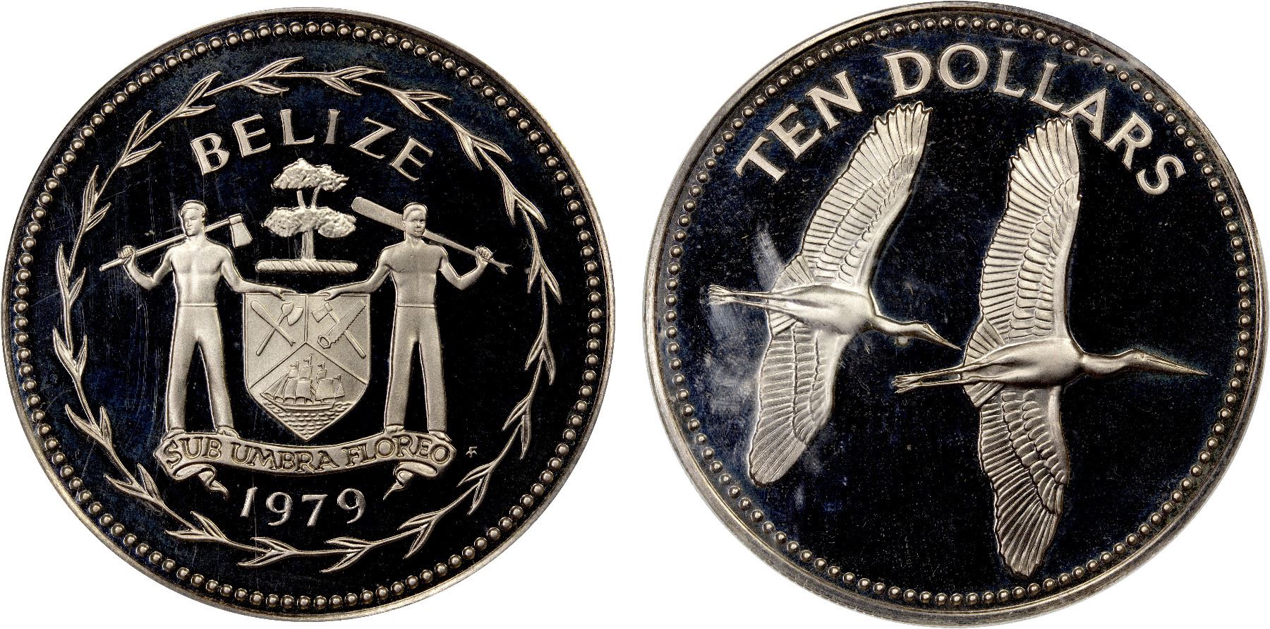 BELIZE: Republic, 10 dollars, 1979-FM, KM-57, Jabiru; struck by the Franklin Mint in copper-nickel, mintage of only 1,287, PCGS graded Proof 68 DCAM.