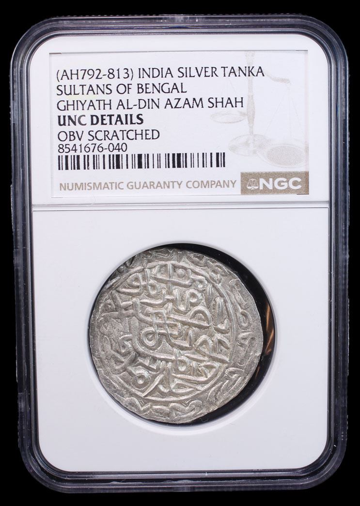 BENGAL: Ghiyath al-Din A'zam Shah, 1389-1410, AR tanka (Firuzabad), DM, G-B242, nice strike, scratched (on the obverse, barely noticeable), NGC graded UNC details.
