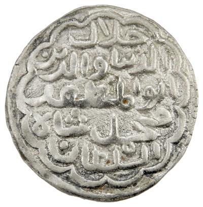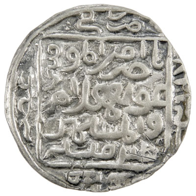 BENGAL: Jalal al-Din Muhammad, 2nd reign, 1418-1432, AR tanka (10.54g), 'Arsah Chatgaon, AH821, G-B330, square / 13-arc scalloped circle, well-centered strike, no testmarks, Very Fine, R, ex. John Deyell collection.