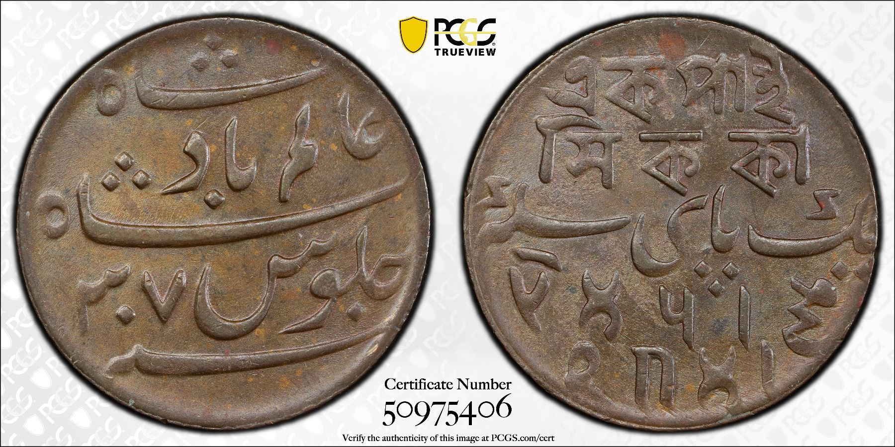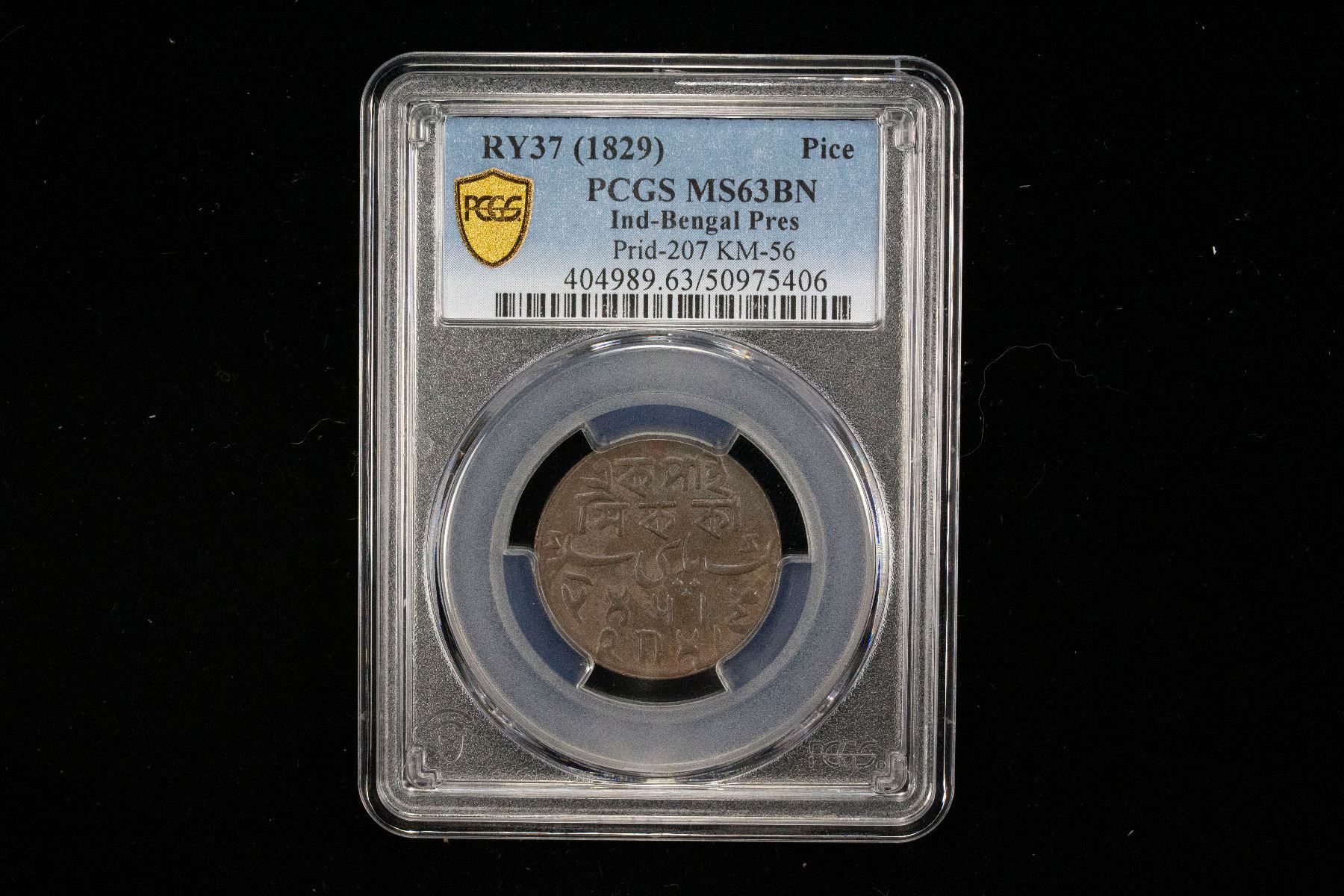 BENGAL PRESIDENCY: AE pice, year 37 (1829), KM-56, Prid-207, East India Company issue, a lovely toned mint state example! PCGS graded MS63 BN.