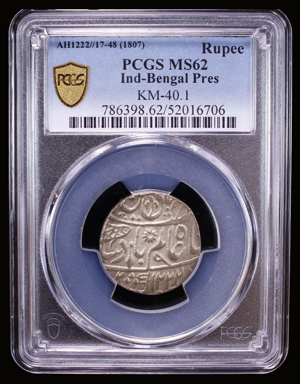 BENGAL PRESIDENCY: AR rupee (11.33g), Muhammadabad Benares, AH1222 year 17/49, PCGS MS62