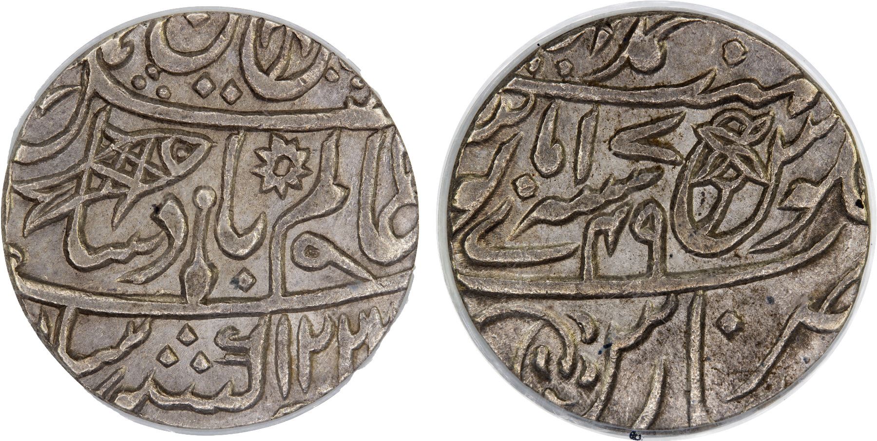 BENGAL PRESIDENCY: AR rupee, Muhammadabad Benares, AH1222 year 17/49, Stv-7.101, Prid-274. KM-40.1, privy mark N, PCGS graded AU55.