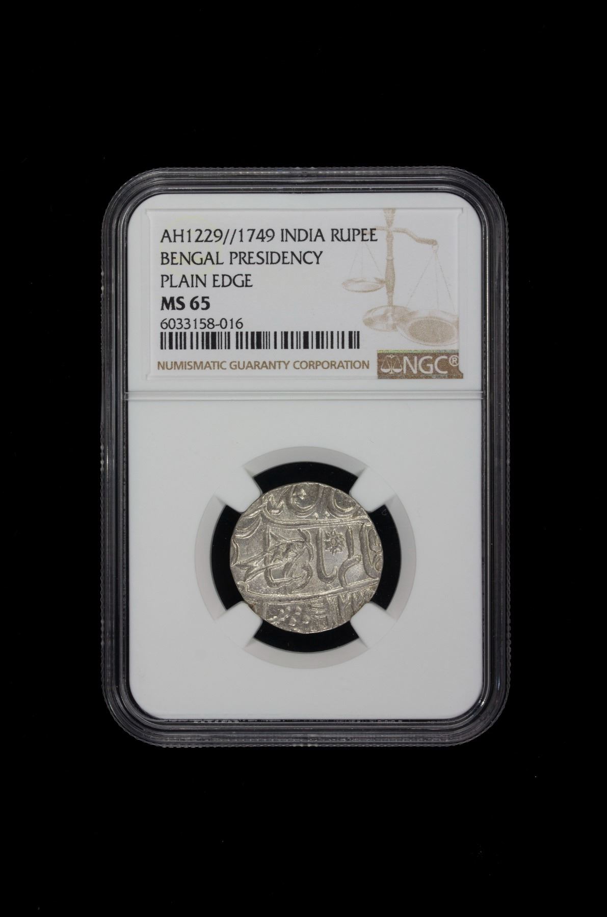 BENGAL PRESIDENCY: AR rupee, Muhammadabad Benares, AH1229 year 17 & 49, Stv-7.139, KM-41., wonderful deep strike, lustrous, NGC graded MS65.