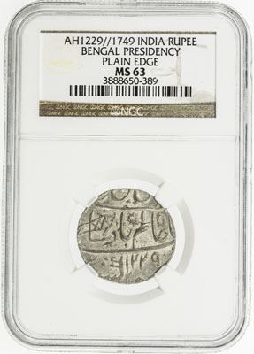 BENGAL PRESIDENCY: AR rupee, Muhammadabad Benares, AH1229 year 49, Stv-7.139, KM-41, Prid-286, plain edge, NGC graded MS63.