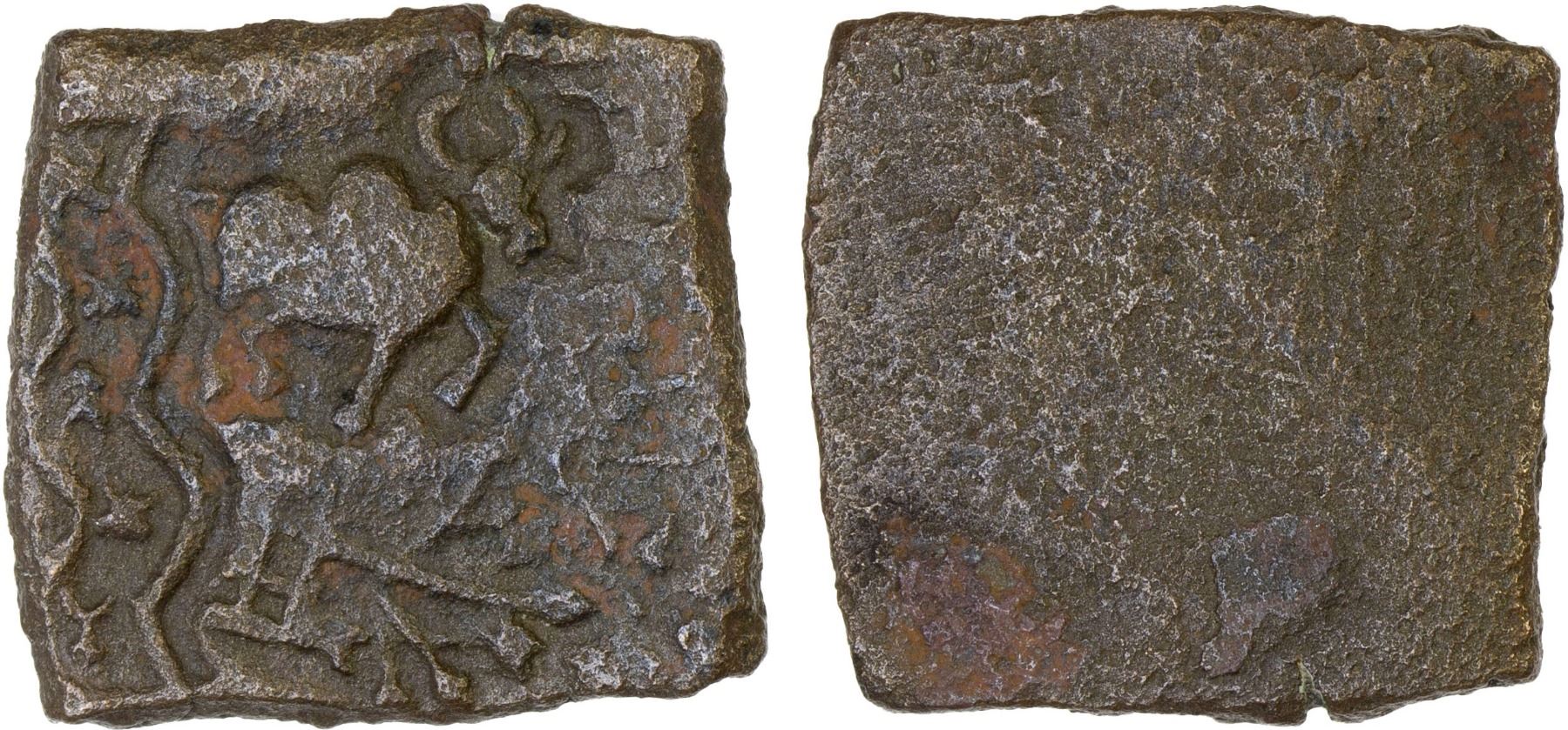 BHAGILA: Anonymous, 2nd century BC, AE square unit (4.63g), VF