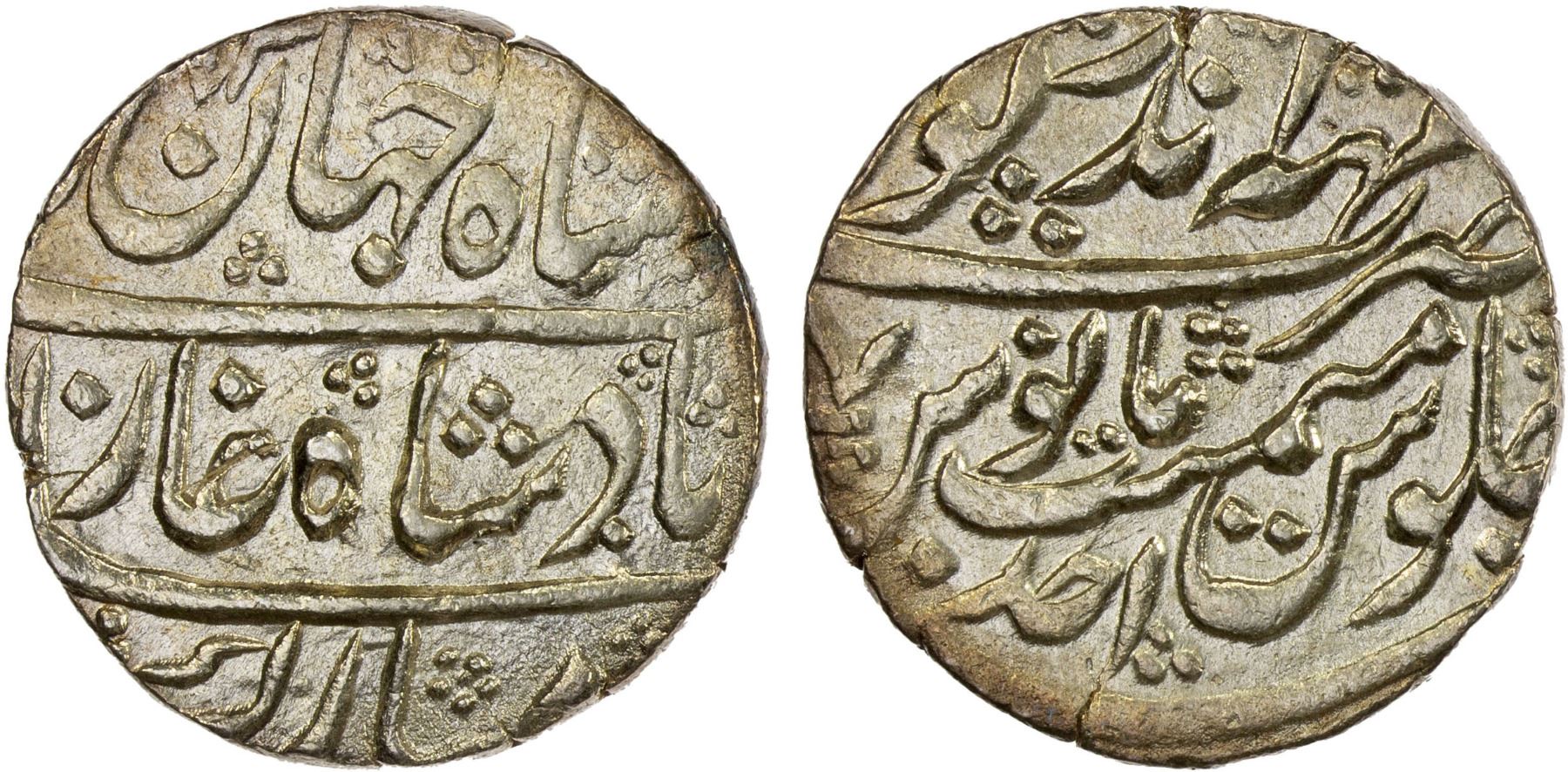 BHARATPUR: AR rupee (11.19g), Mahe Indrapur, AH(11)73 year one, KM-29, in the name of Mughal emperor Shah Jahan III, XF, ex David Fore Collection.