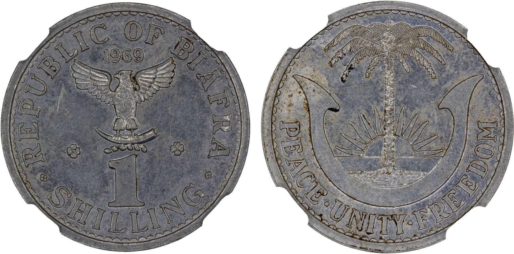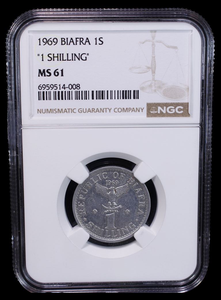 BIAFRA: Independent Republic, 1 shilling, 1969, KM-2, one-year type, NGC graded MS61.