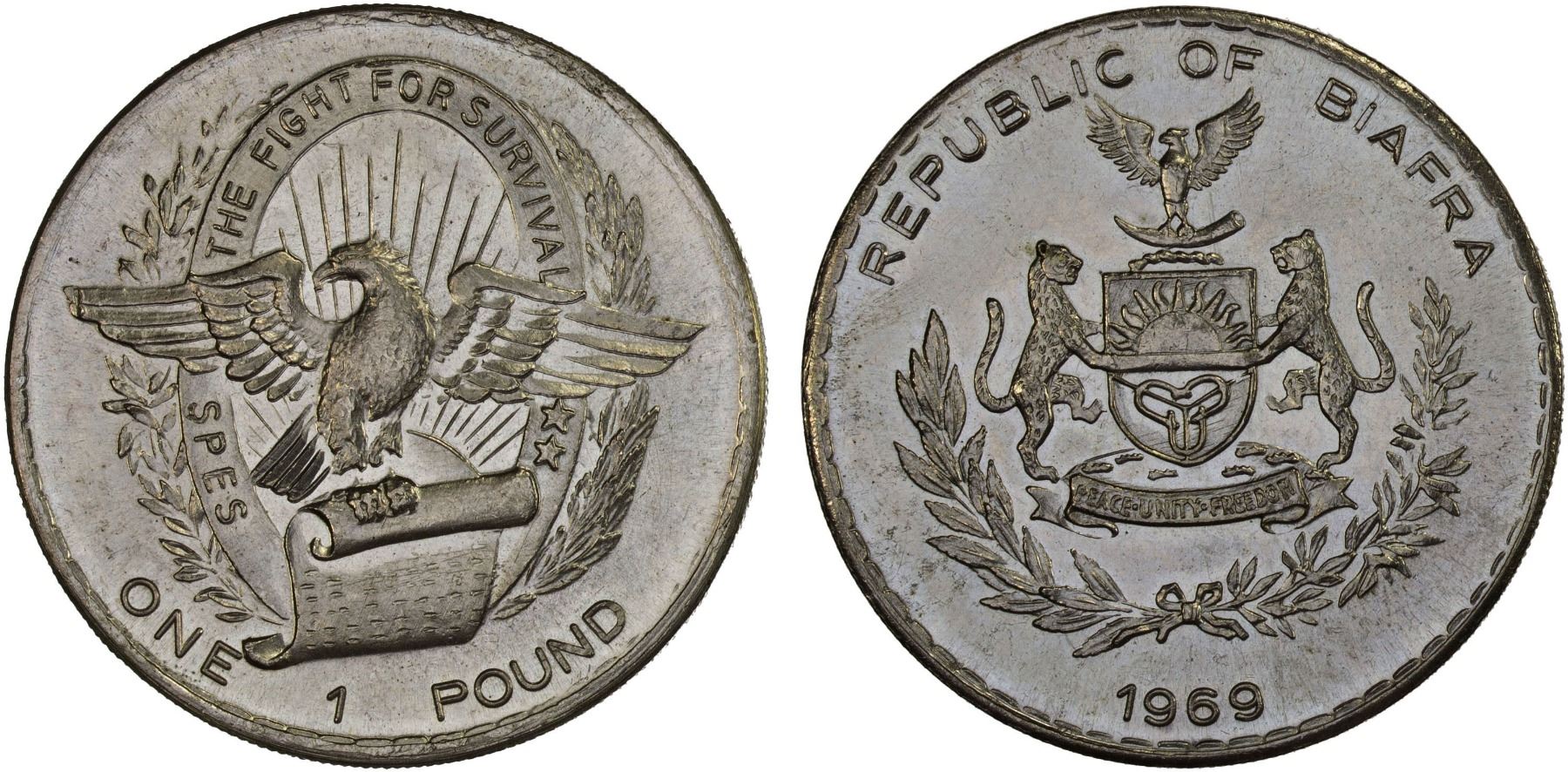 BIAFRA: Republic, AR pound, 1969, KM-6, hairlined, one-year type, Unc, ex Dr. Wolfgang Schuster Collection.