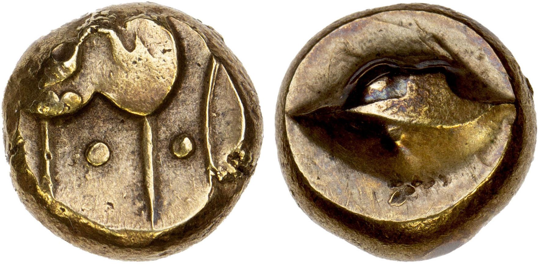 BIJAPUR: Anonymous, 17th century, AV pagoda (3.31g), G-BJ47, not quite anepigraphic, allegedly male and female symbols, with Arabic sî on the obverse symbol, perhaps a reference to Sikandar 'Adil Shah of Bijapur (1672-1688); with consignor's description, XF, R, ex Ian Todd Collection.