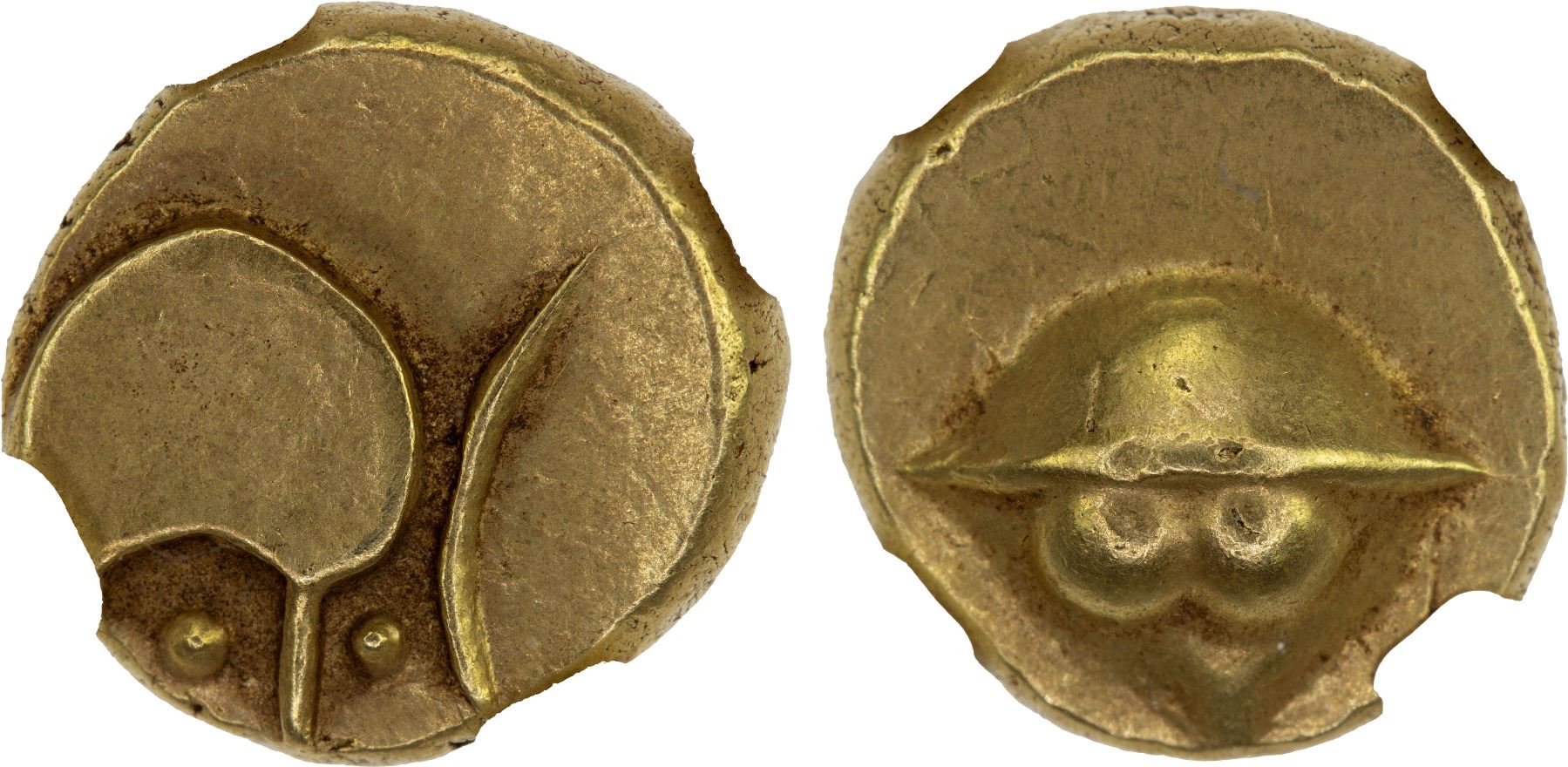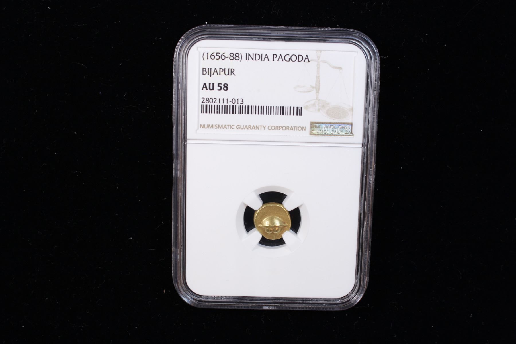 BIJAPUR: Anonymous, 17th century, AV pagoda, G-BJ47, totally anepigraphic, allegedly male and female symbols, NGC graded AU58.