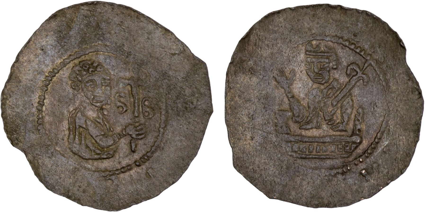 BOHEMIA: Ottakar I, 1192-1193, AR denar (1.12g), Frynas-B.22.12, Cach-663, half-length figure of Premysl left, holding lis-tipped scepter // half-length figure of St. Wenceslaus right, holding cross; S-S flanking cross, XF.