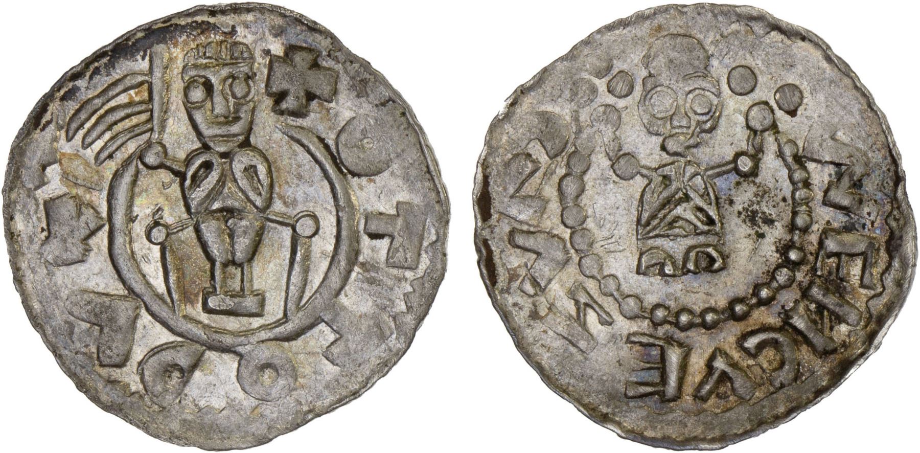BOHEMIA: Otto I of Moravia, 1061-1087, AR denar (0.77g), Svatopluk (Olmütz), Frynas-BM.Olom.2.8, Cach-377, figure facing with standard // WENCESLUZ, figure holding a cross in each hand, VF-XF.