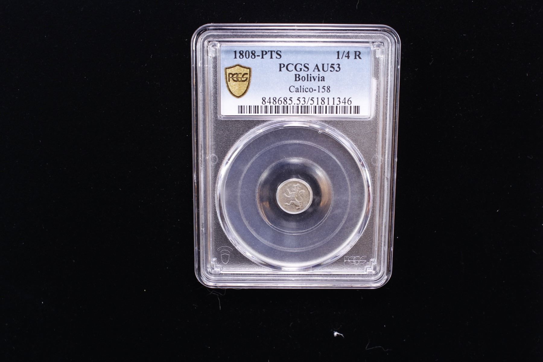 BOLIVIA: Carlos IV, 1788-1808, AR 1/4 real, 1808-PTS, KM-82, PCGS graded AU53, ex Almer H. Orr III Collection.