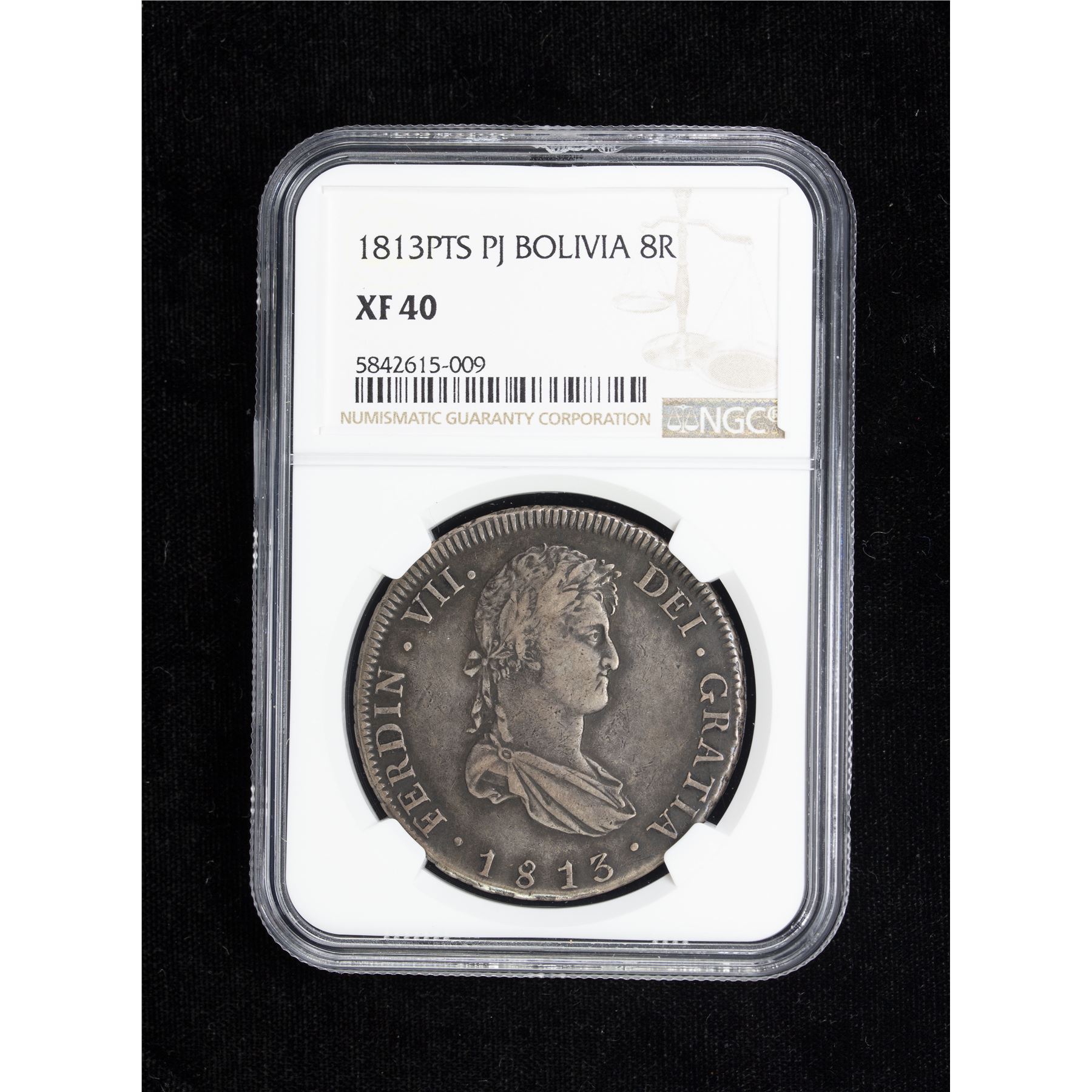 BOLIVIA: Fernando VII, 1808-1825, AR 8 reales, 1813, KM-84, assayer PJ, toned, NGC graded EF40.