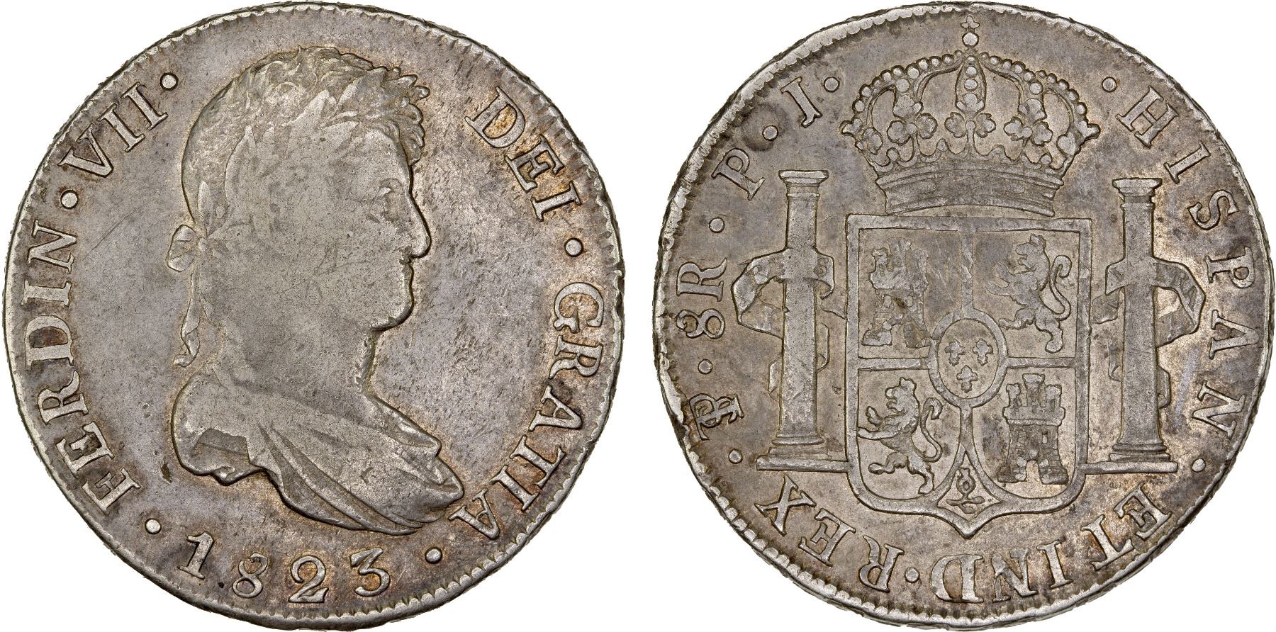 BOLIVIA: Fernando VII, 1808-1825, AR 8 reales, 1823-PTS, VF
