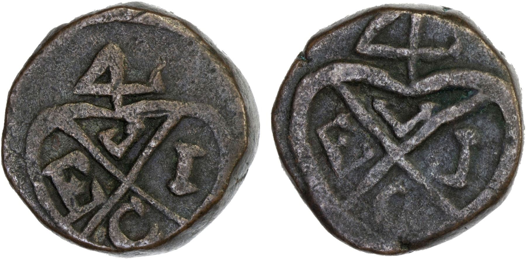 BOMBAY PRESIDENCY: AE pice (10.41g), ND (ca. 1800-25), Stv-6.71, Prid-300, struck at Broach mint, East India Company balemark on both sides, VF, ex Anton Holt Collection.