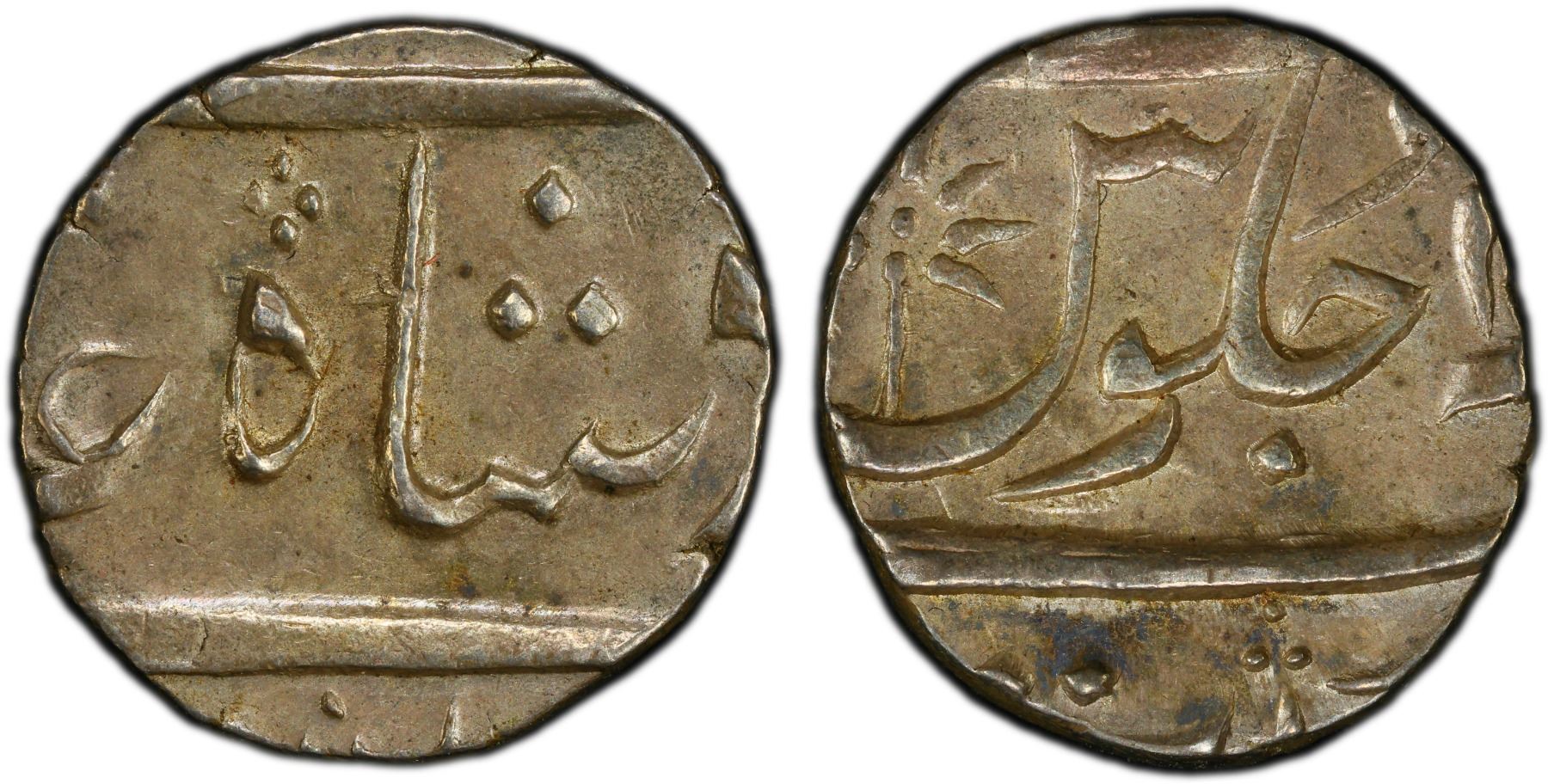 BOMBAY PRESIDENCY: AR 1/2 rupee (5.76g), Surat, ND, KM-175, East India Company issue in the name of the Mughal Emperor Alamgir II, struck at the Bombay mint, a lovely mint state example! PCGS graded MS63.