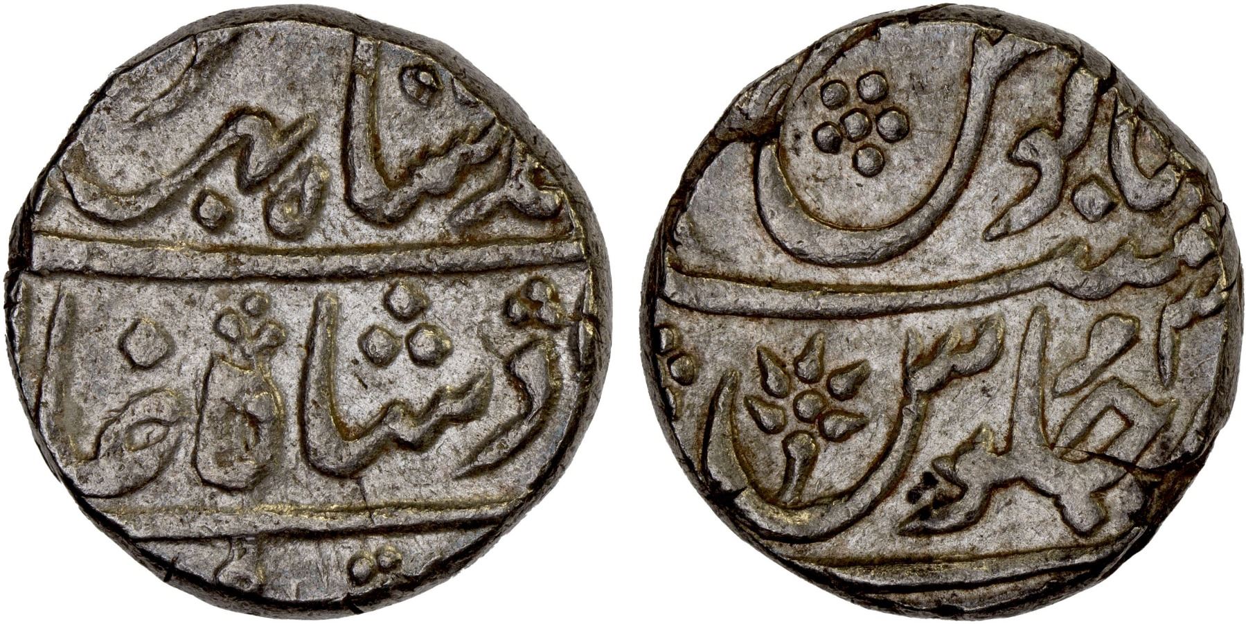 BOMBAY PRESIDENCY: AR rupee (11.51g), Munbai, year 3, KM-163, East India Company issue in the name of Muhammad Shah, lustrous, XF-AU.
