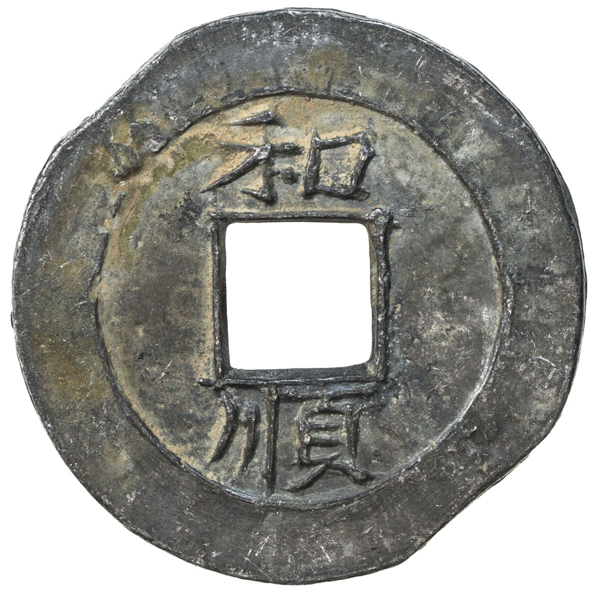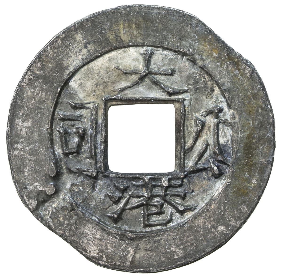 BORNEO: tin/lead cash (6.30g), NM, ND, Millies-258, Montrado region, Chinese legends: da gang gong si // he shun (reference to the He Shun Gong Si Federation), much original luster, EF-AU, R. After several wars this Federation's independence ernded with the surrender of the Da Gang company to the Dutch in July 1854, after which the majority of the Gong Si cash were melted down.