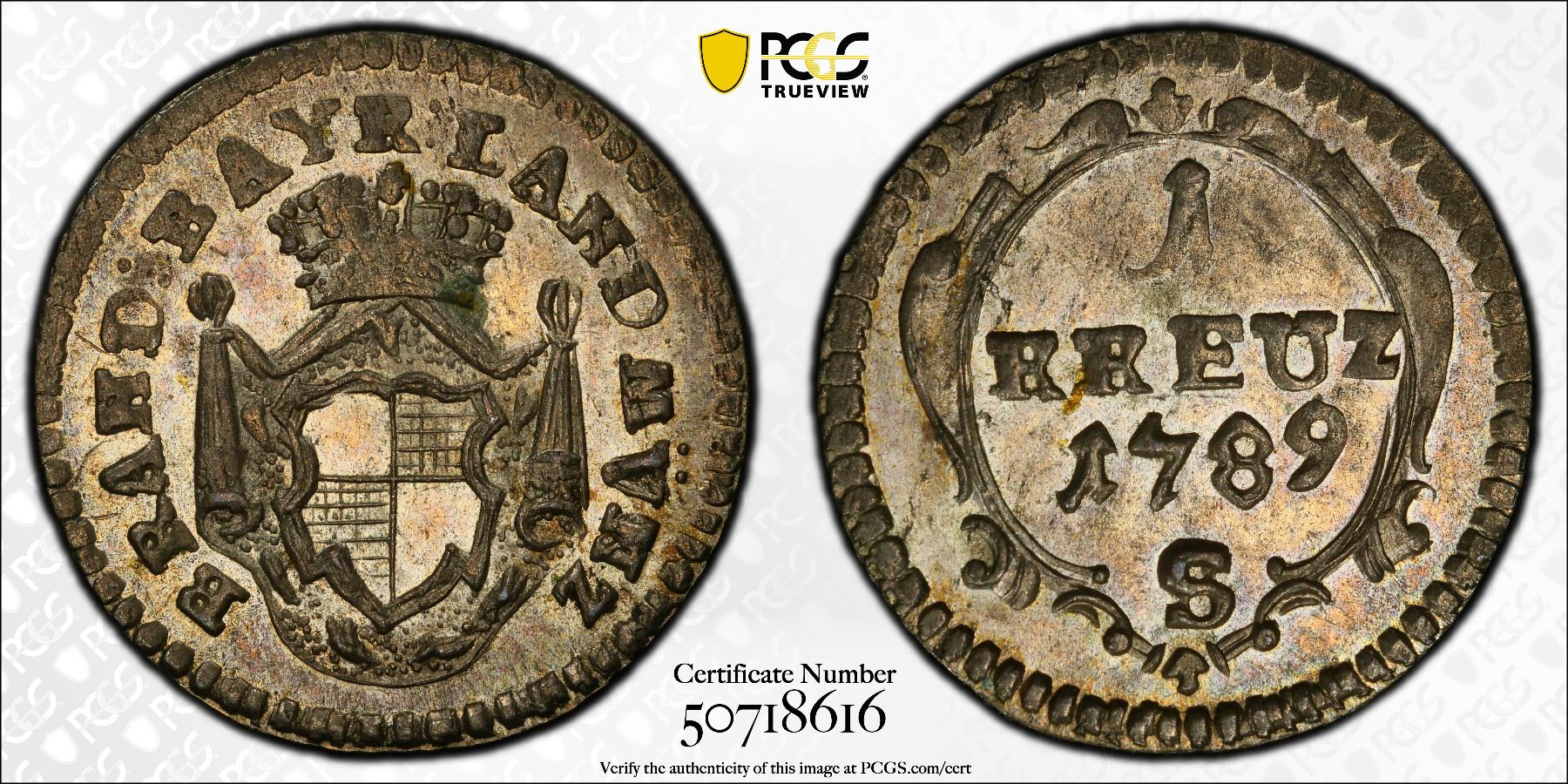 BRANDENBURG-BAYREUTH: Friedrich III, 1735-1763, BI kreuzer, 1789, PCGS MS64 (top pop)