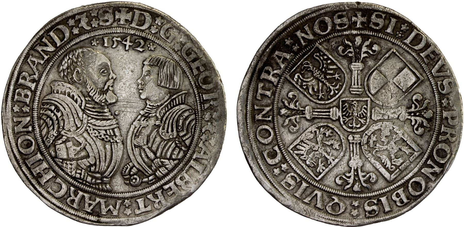 BRANDENBURG: Georg & Albrecht, 1527-1545, AR thaler (28.91g), 1542, VF