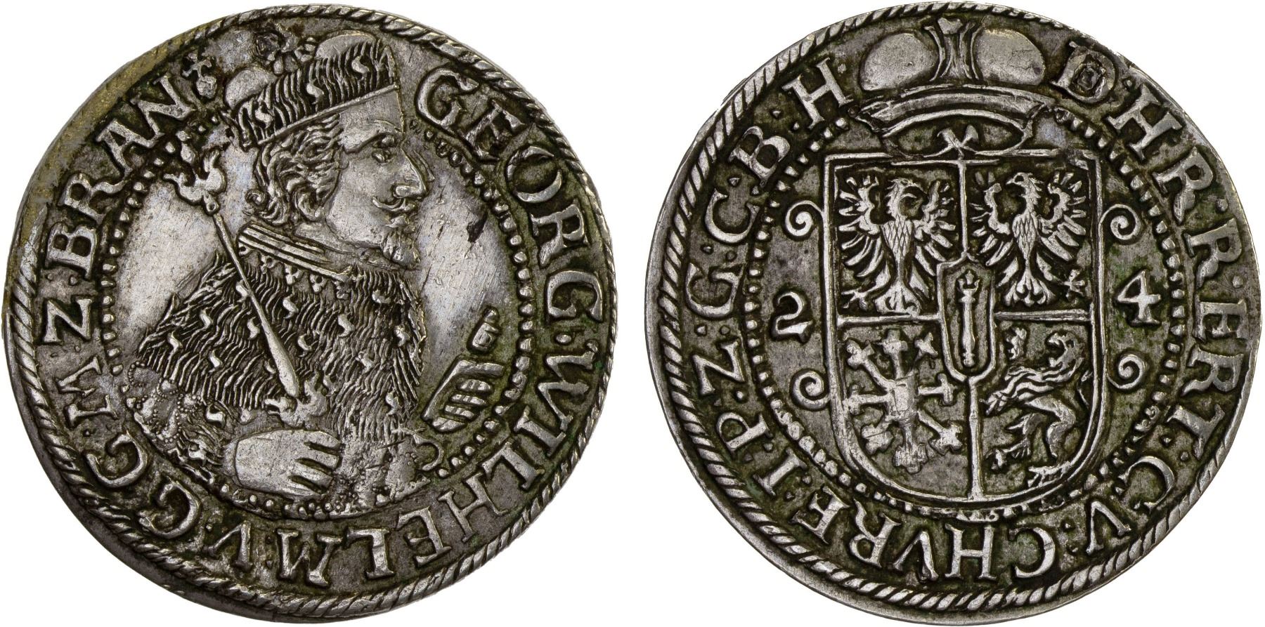 BRANDENBURG-PRUSSIA: Georg Wilhelm, 1619-1640, AR 1/4 thaler (ort), Konigsberg (16)24, VF-XF