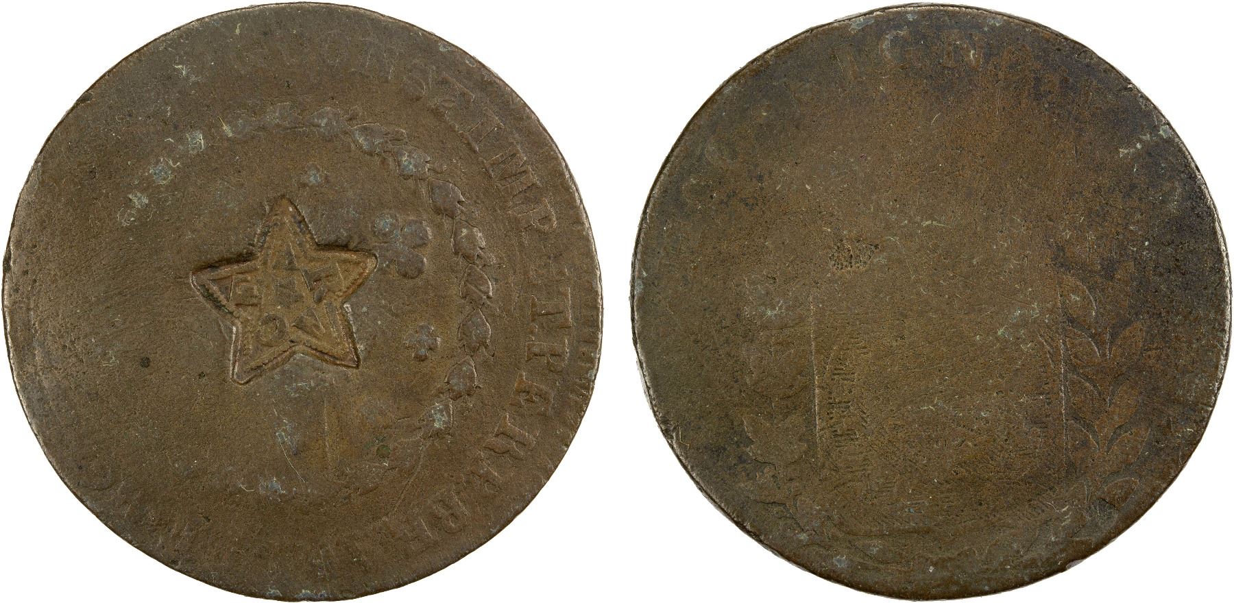 BRAZIL: CEARA: Pedro I, 1822-1831, AE 20 reis, ND [1833-4], KM-397, Ceara countermark on 1829R Brazil 40 reis (KM-363.1) for purposes of revaluation, VF on Fair host.