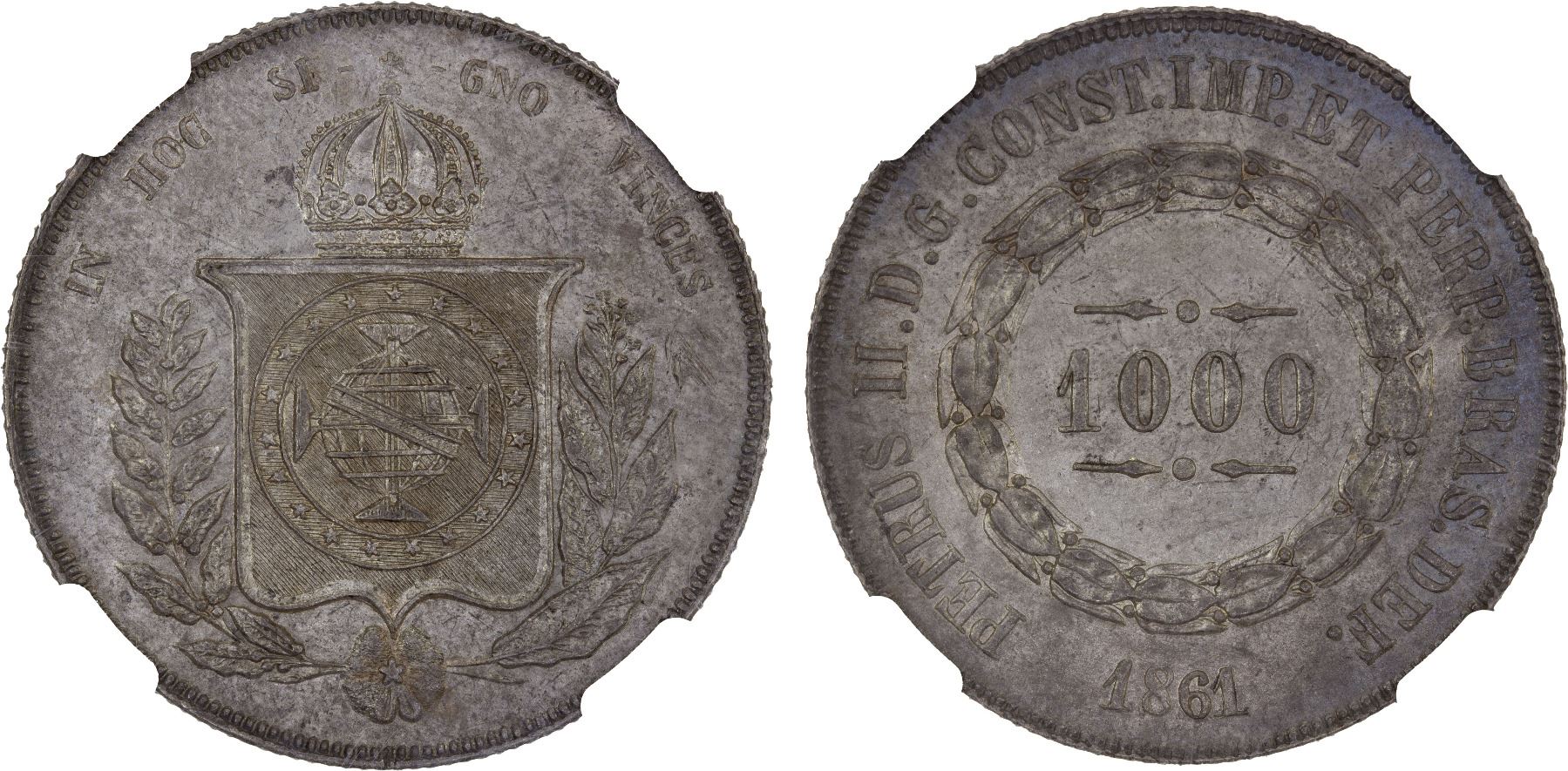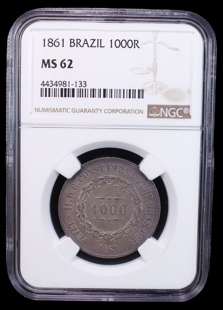 BRAZIL: Peter II, 1831-1889, AR 1000 reis, 1861, NGC MS62