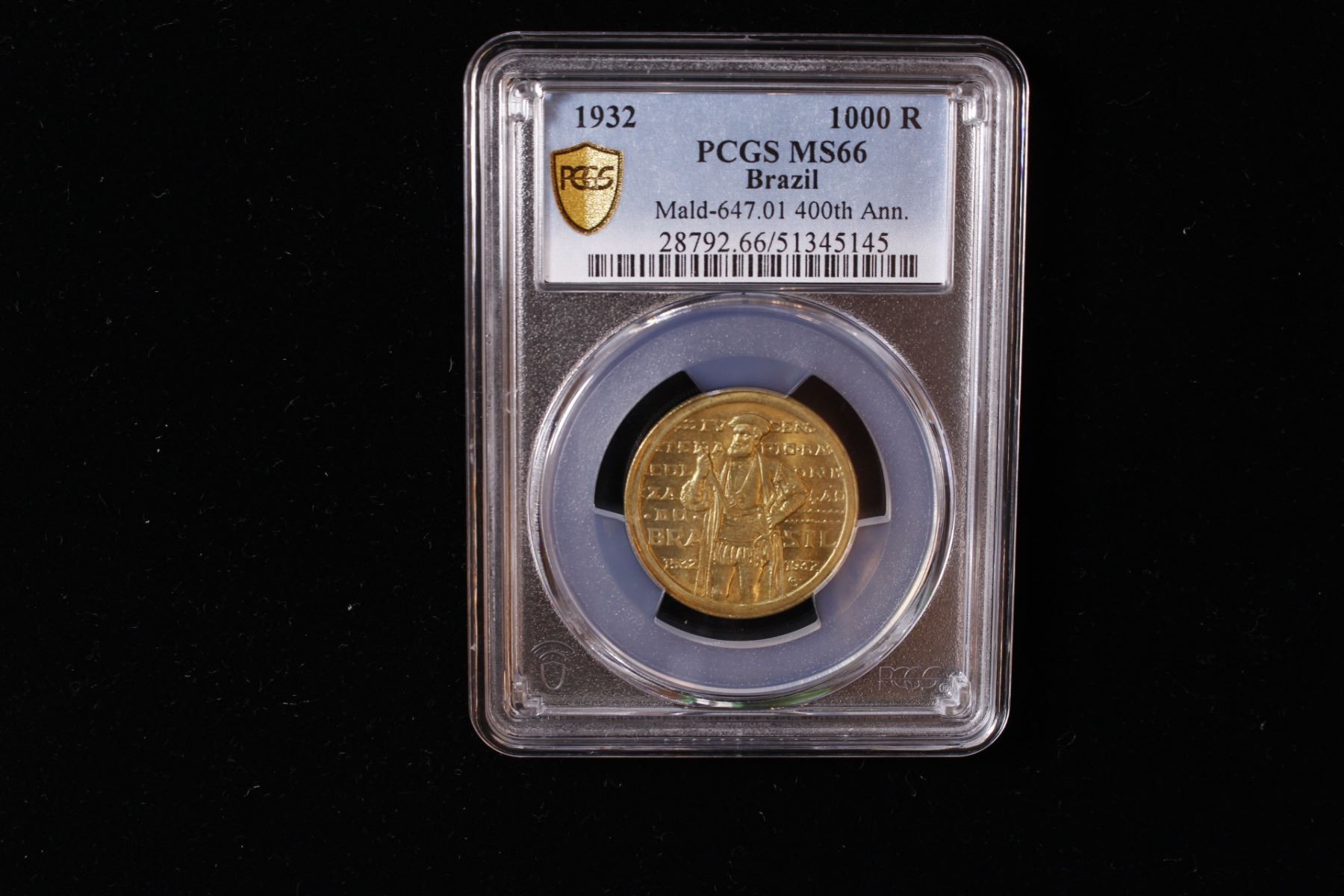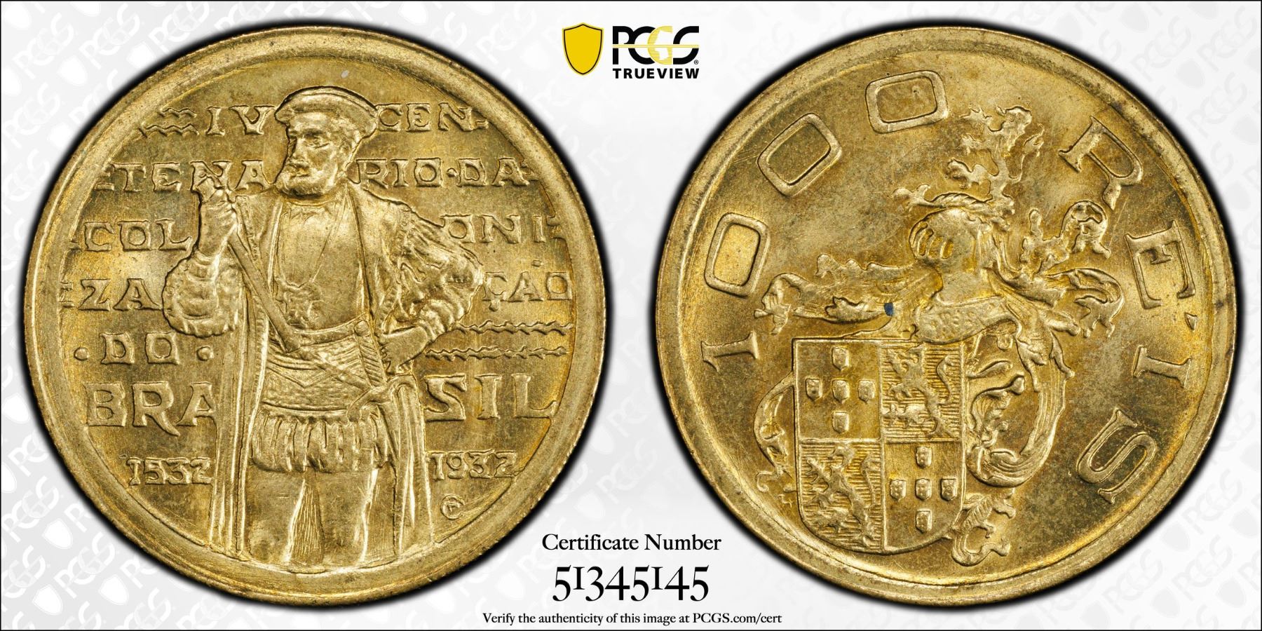 BRAZIL: Republic, 1000 reis, 1932, KM-531, Mald-647.01, 400th Anniversary of Colonization - Martim Affonso da Sousa, PCGS graded MS66.