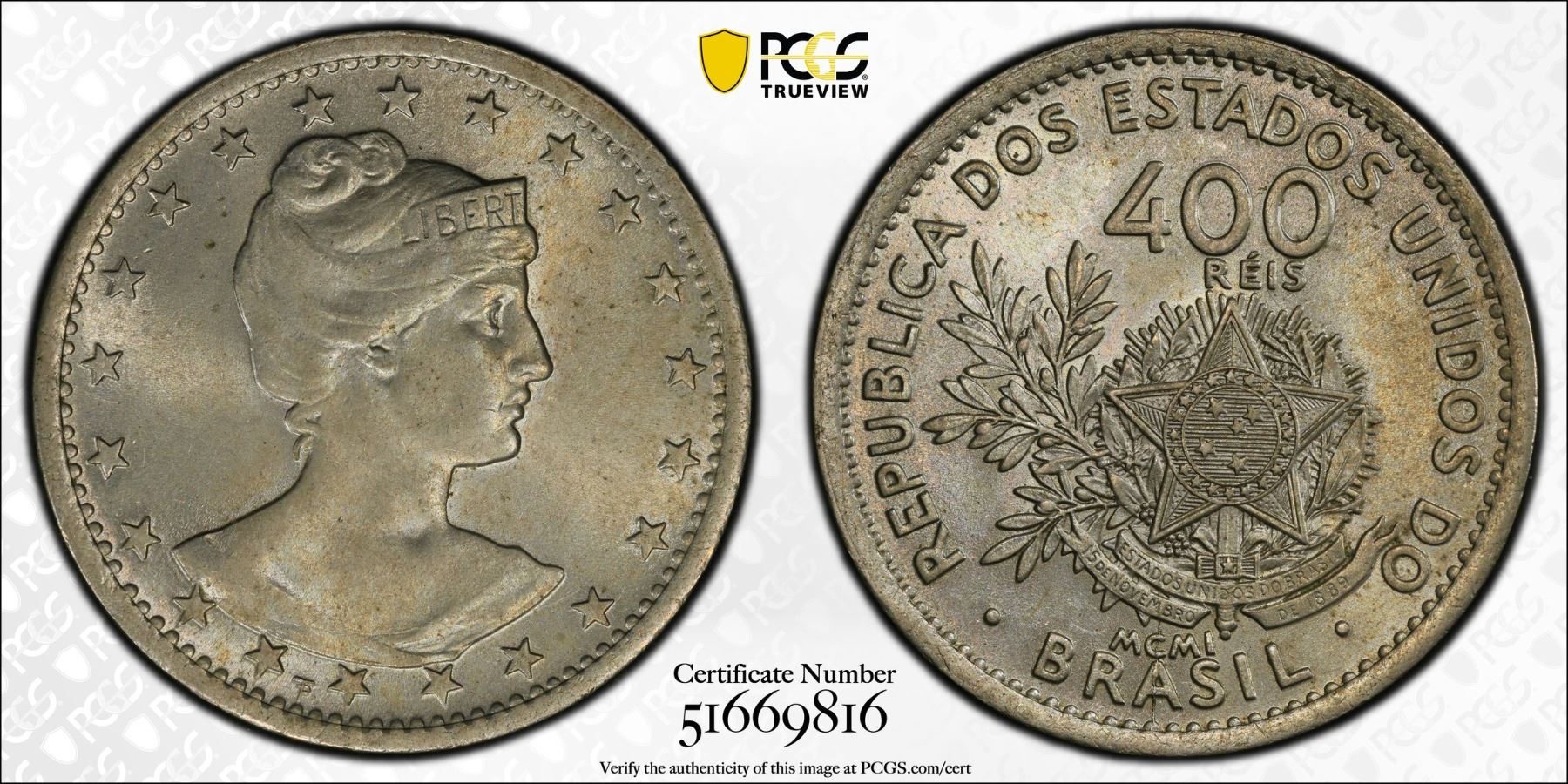 BRAZIL: Republic, 500 reis, 1932, KM-505, Y-4, one year type, a lovely lustrous example! PCGS graded MS63, ex Almer H. Orr III Collection.