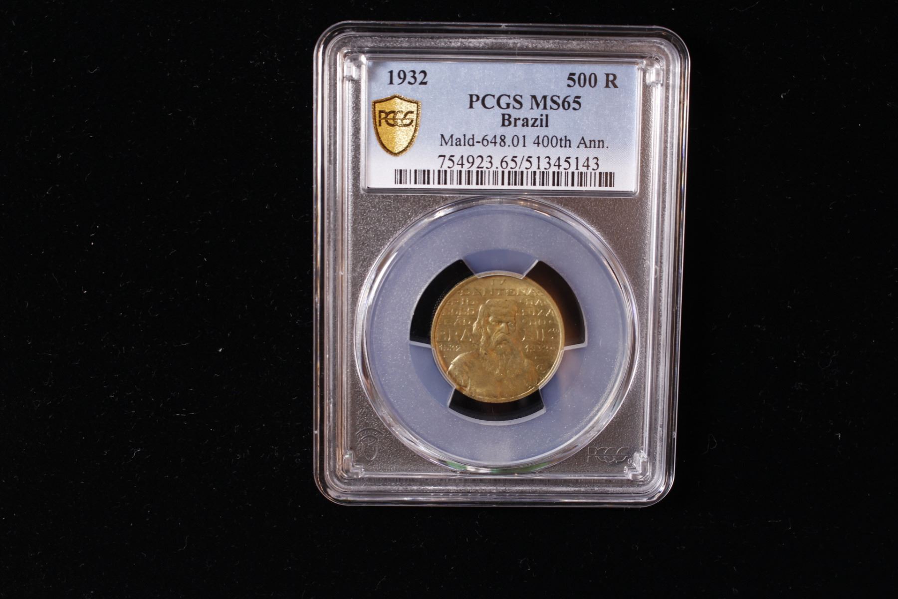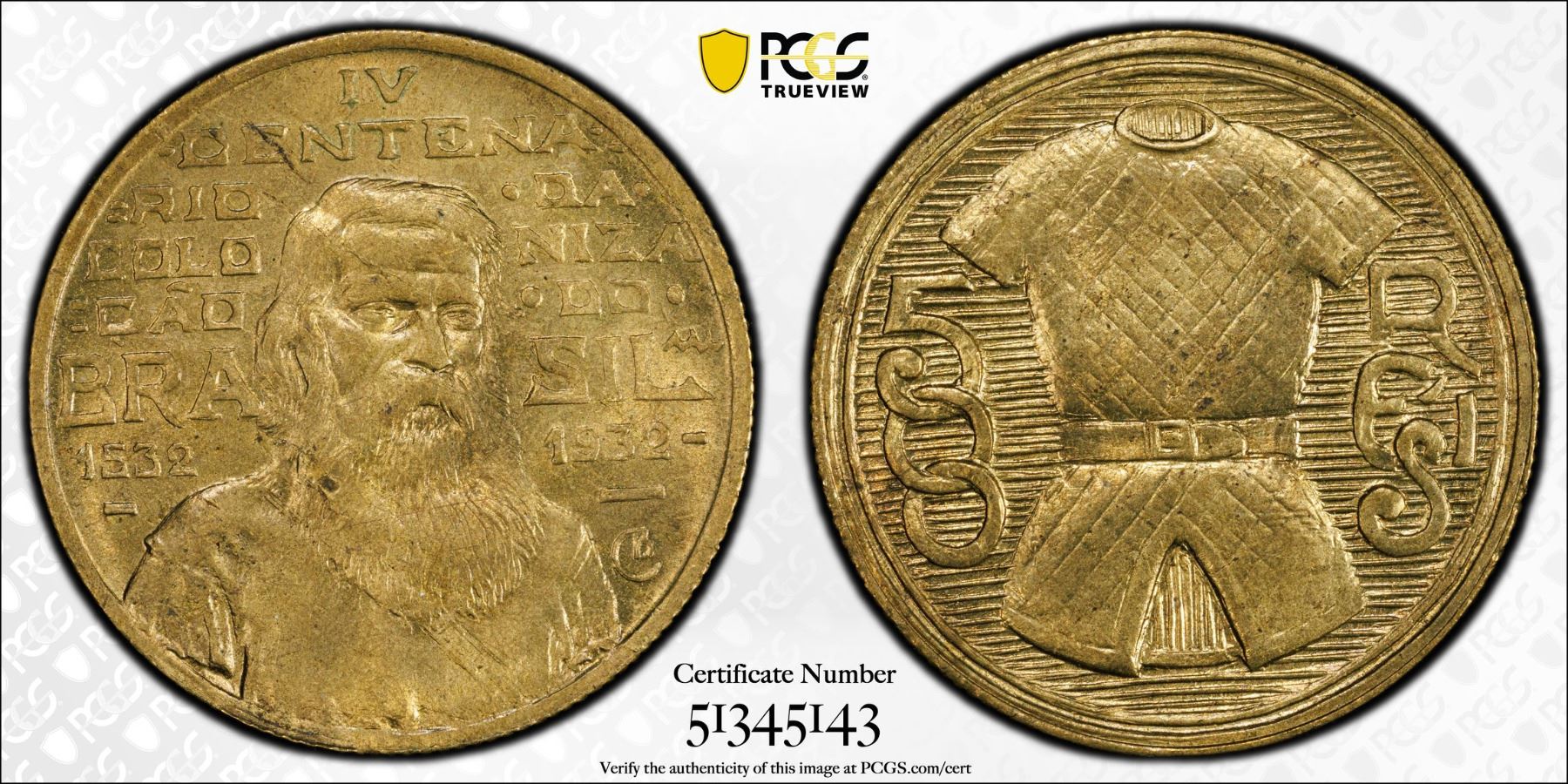 BRAZIL: Republic, 500 reis, 1932, KM-530, Mald-648.01, 400th Anniversary of Colonization - João Ramalho, PCGS graded MS65.