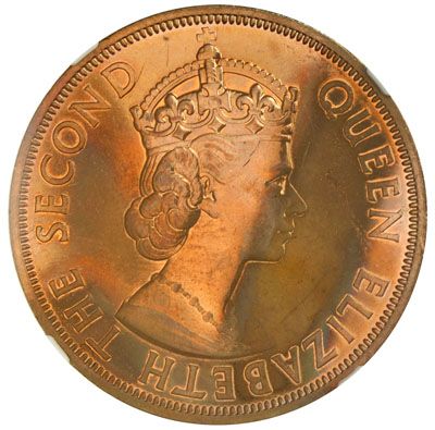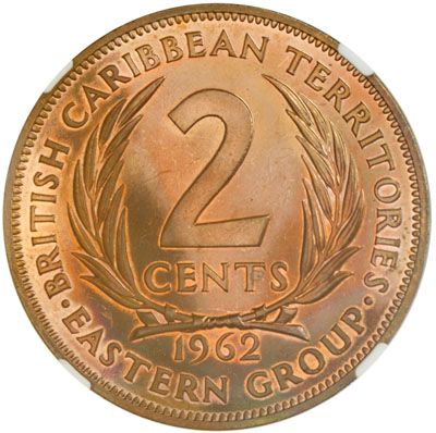 BRITISH CARIBBEAN TERRITORIES: Elizabeth II, 1952-, 2 cents, 1962, KM-3, VIP Proof Record specimen, NGC graded PF63 RB.