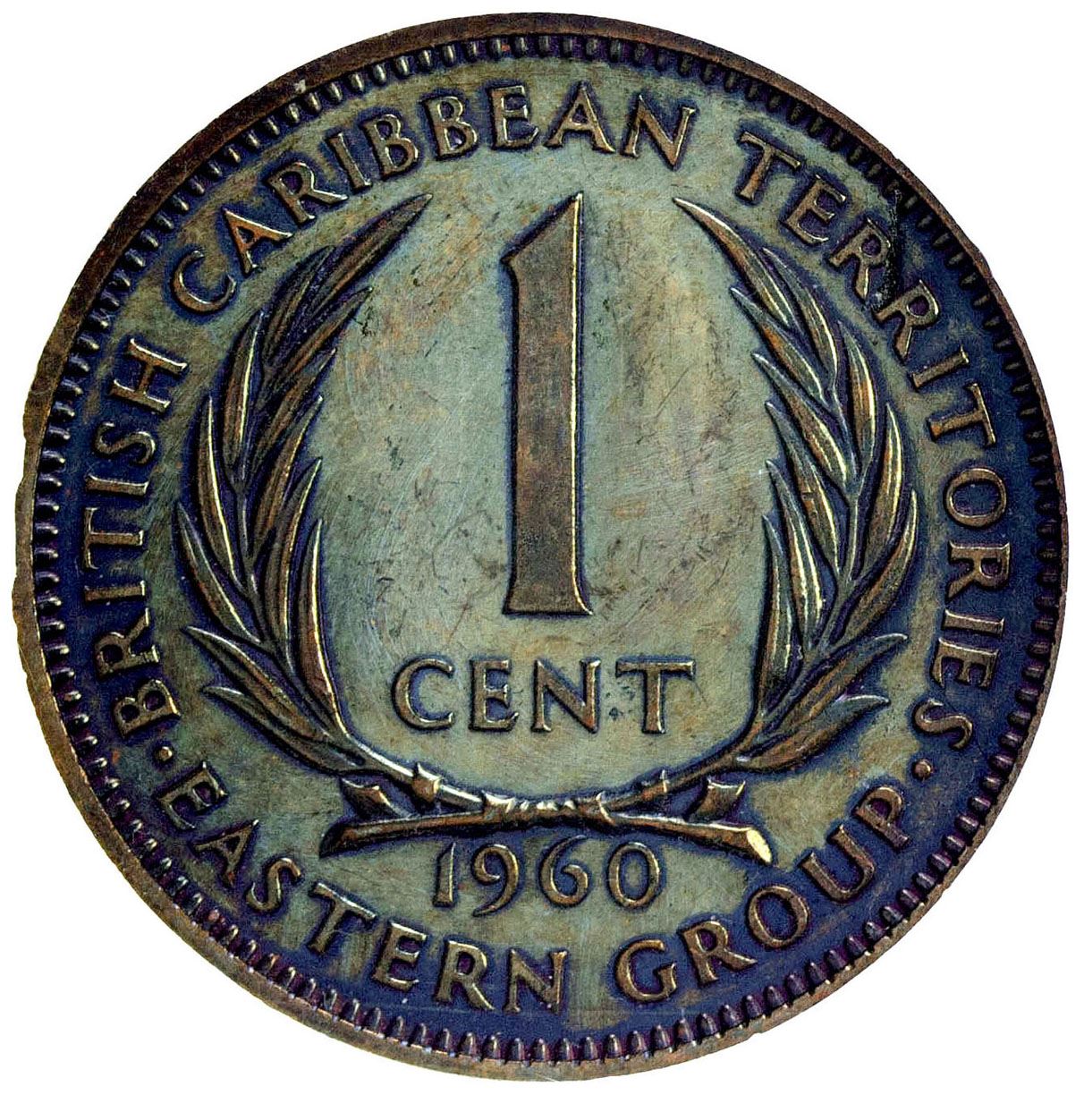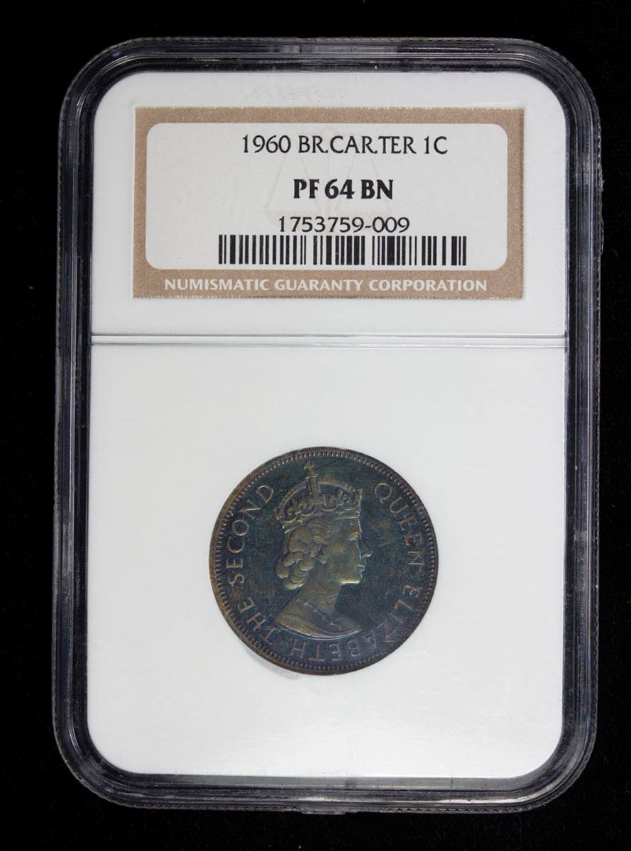 BRITISH CARRIBEAN TERRIRORIES: 1 cent 1960, KM-2, deep blue toning, NGC graded PF64 BR, R.