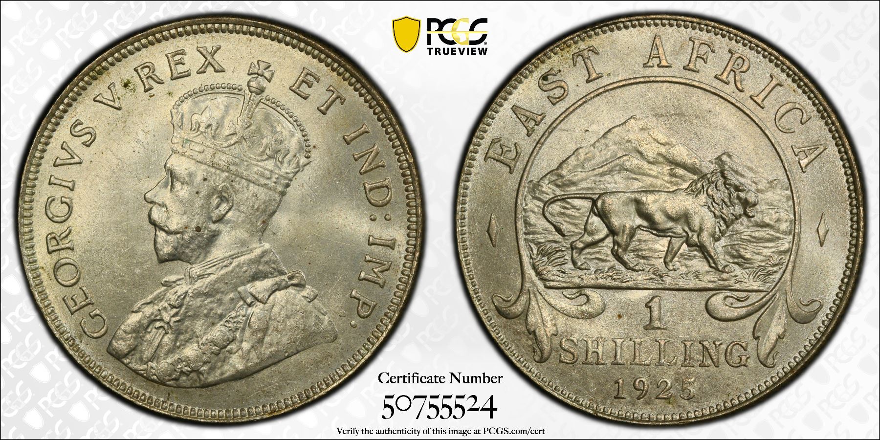BRITISH EAST AFRICA: George V, 1910-1936, AR shilling, 1925, PCGS MS64
